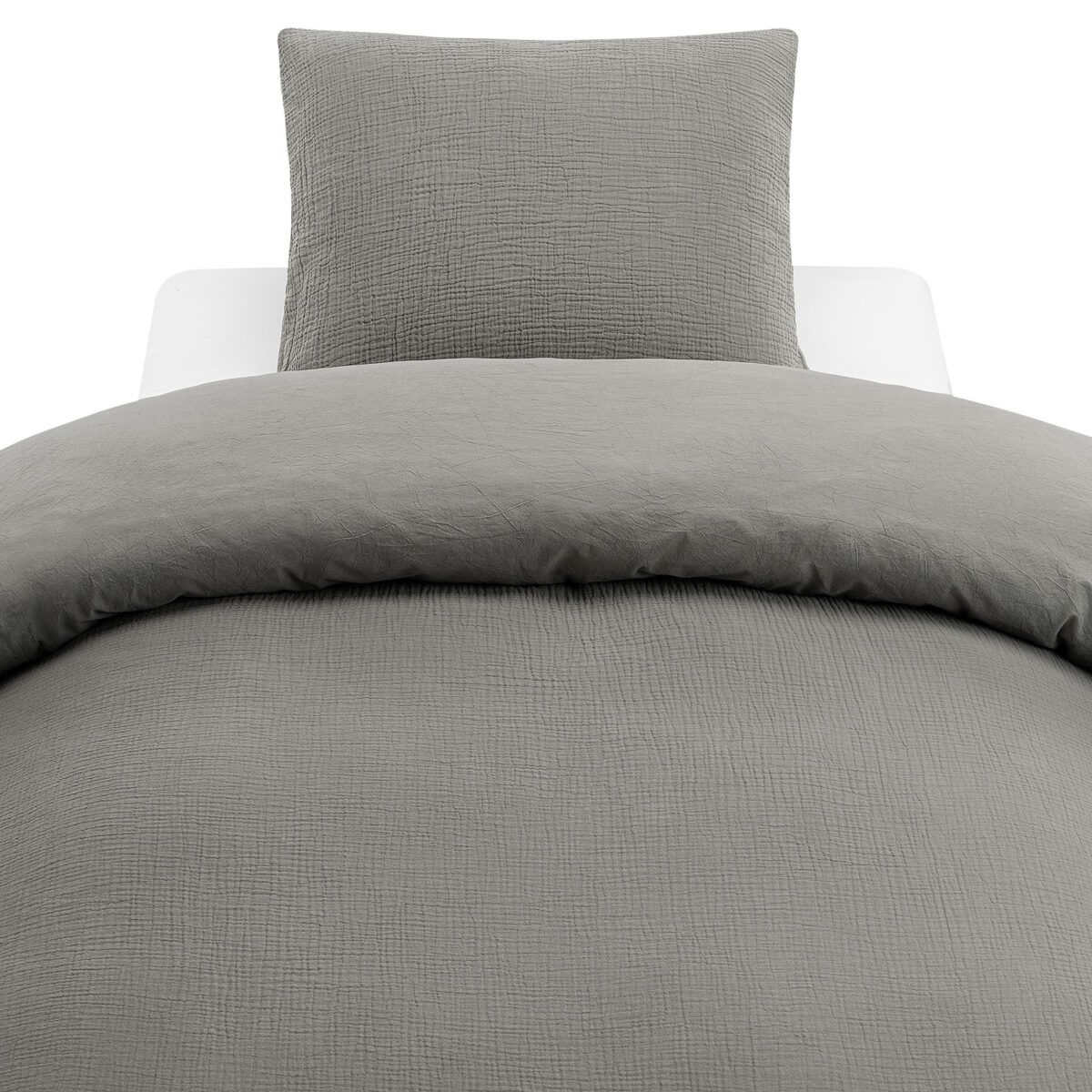 Ett tokskönt bäddset för enkelsäng i muslin/double gauze. Ett påslakan och ett örngott. Känns luftigt och sov-vänligt.