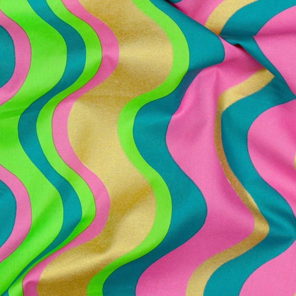 Bomullspoplin Penny grön/rosa/guld fg 6