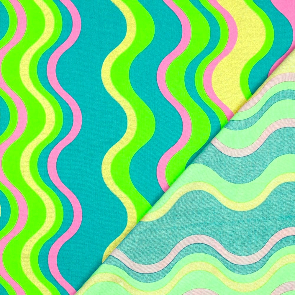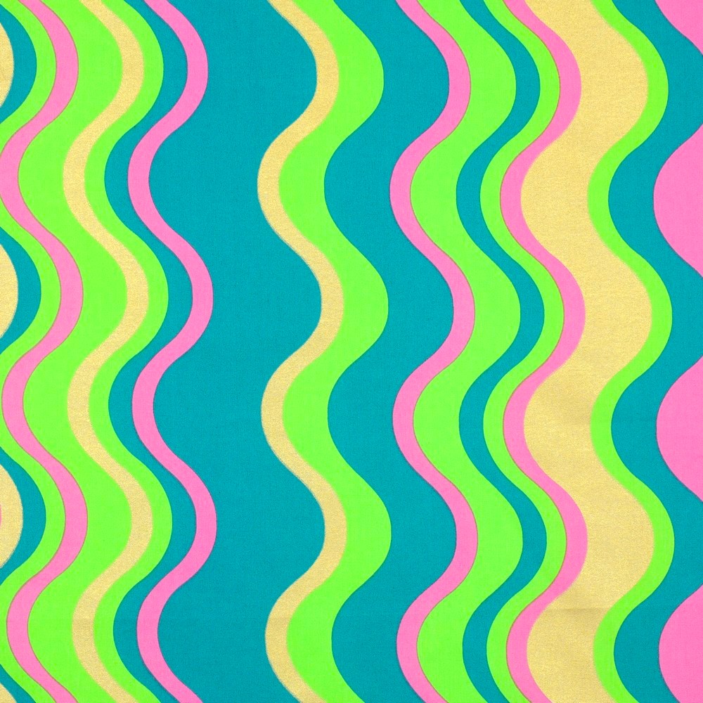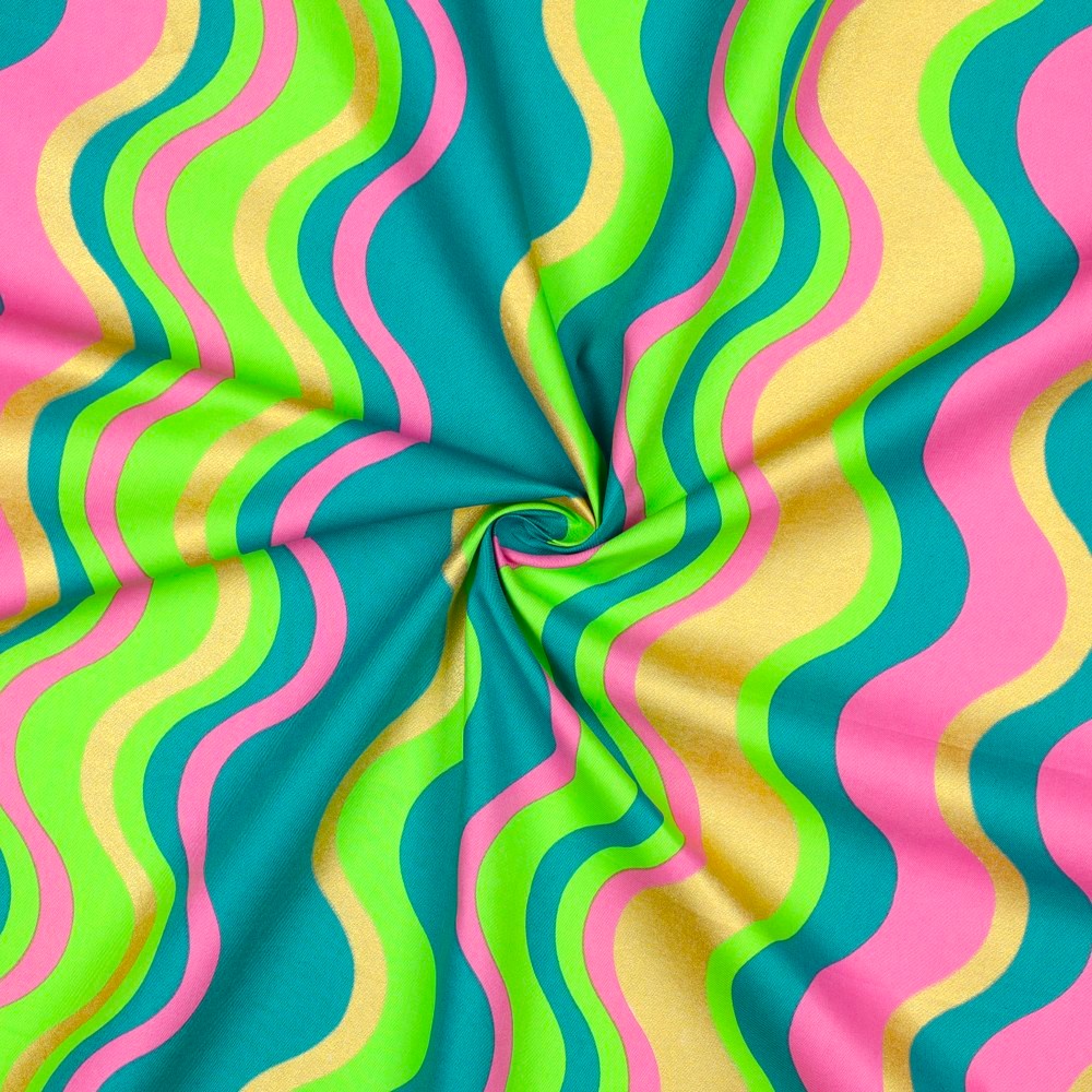 Här skriker 60- och 70-talet på sin allra högsta och mest vrickade nivå. färgerna är starka och det lite lätt glittriga guldet är verkligen pricken över i:et! Bredaste randen är ca 5cm. En extra härlig bomullspoplin (=tätvävd). Tänk dig en skjorta eller en klänning eller en kudde eller en duk eller en gardin eller…Allt! Tänk dig succén du kommer att göra på hippie-festen!?