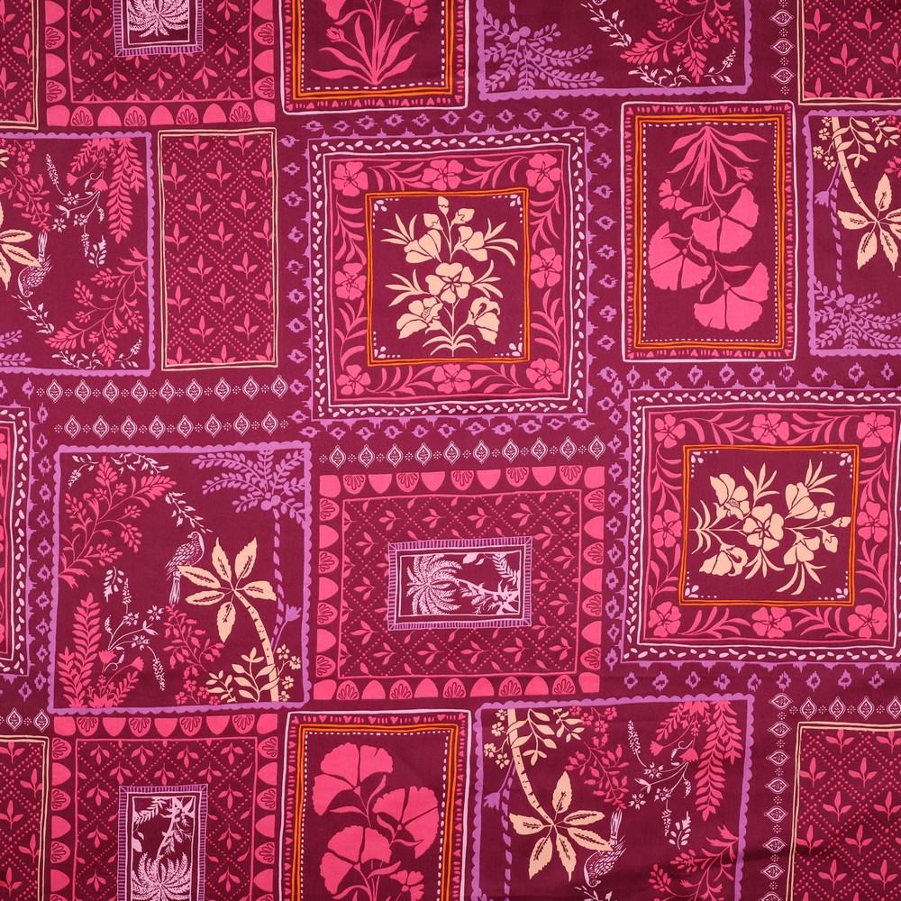 Bomullssatin Lush frames vinröd/rosa fg 1