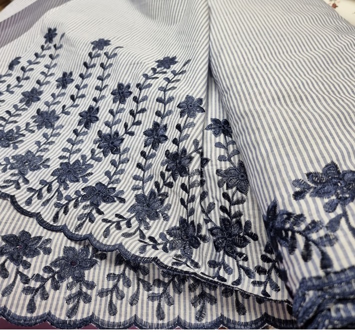 Som om någon viskade sommarminnen i örat. En broderad blombord på en lite tunnare garnfärgad rand; wow! Passar ypperligt till sommarblusar, skjortor, klänningar, gardiner etc.