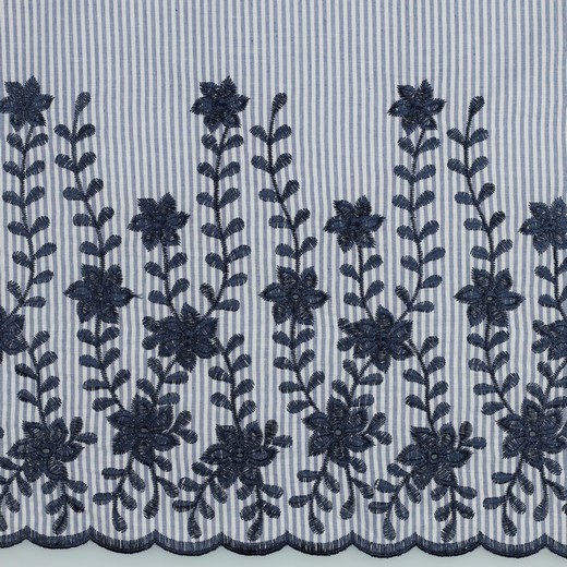 Som om någon viskade sommarminnen i örat. En broderad blombord på en lite tunnare garnfärgad rand; wow! Passar ypperligt till sommarblusar, skjortor, klänningar, gardiner etc.