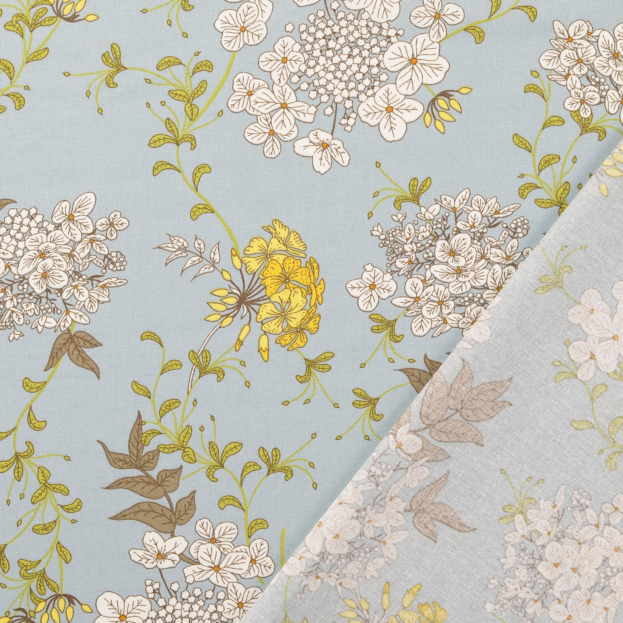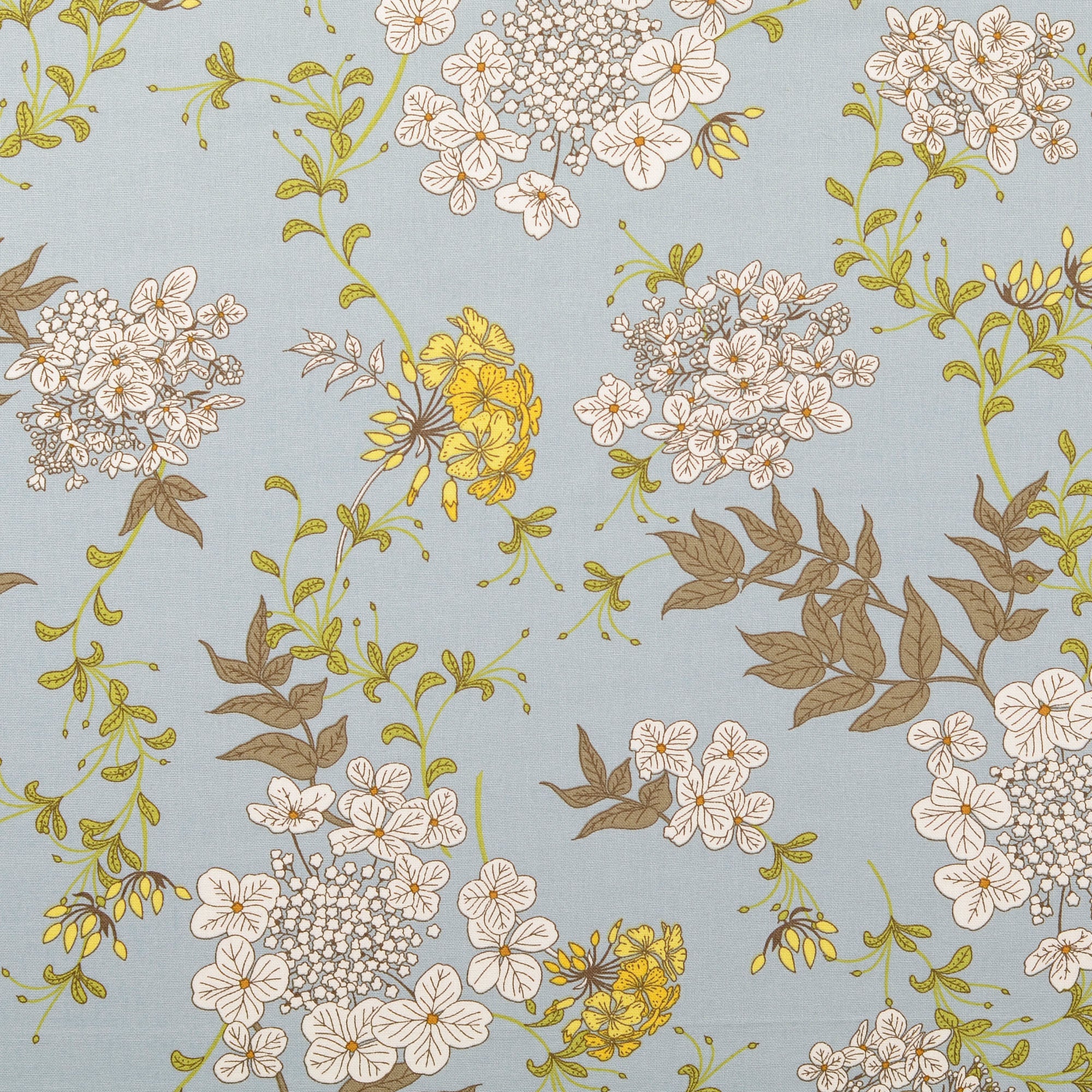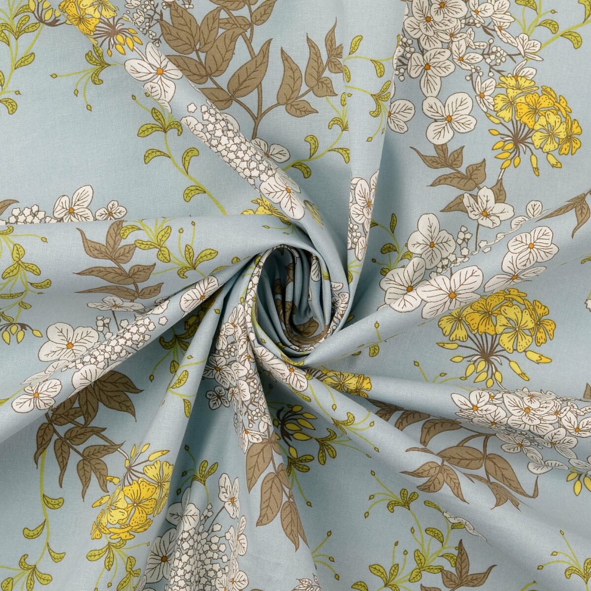 Bomullstyg Blomsjäl ljusblå/gul fg 2