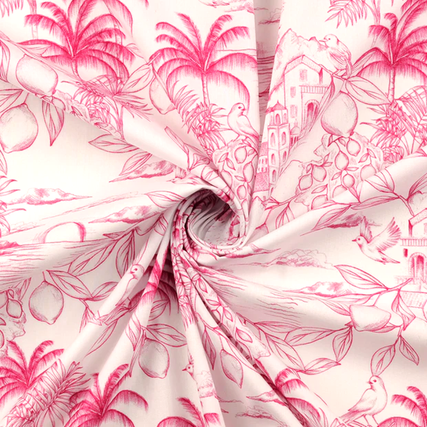 Bomullstyg Drömmarnas land rosa/vit fg 3