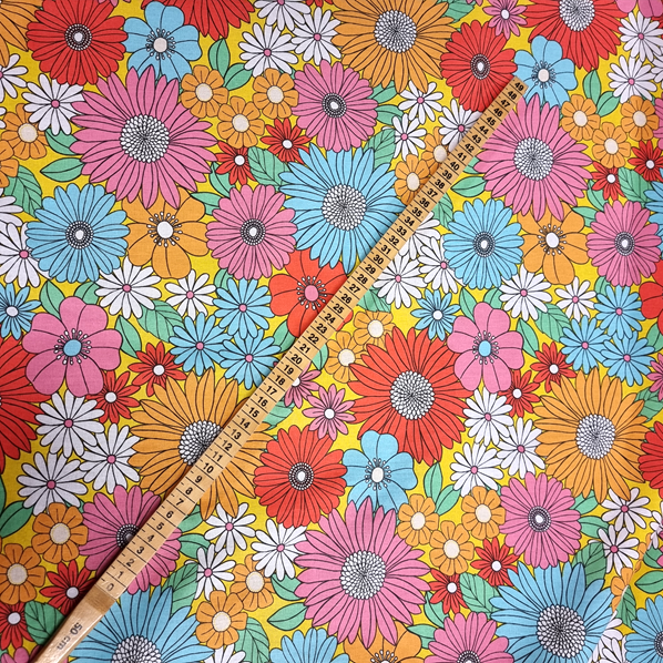 Bomullsväv i retromönster för kläder och inredning.