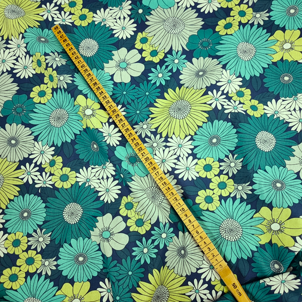 Du kanske undrar varför det heter kryptonit? Jo, det här med retro, blommigt och härliga färger, ja det är nästan omöjligt att motstå för en tygälskare. En högkvalitativ (cretonne) och härlig bomullsväv. Gör sig lika bra i skjortan, som i kjolen, som i gardinen, som i örngottet, som i, ja, du förstår, den passar till lite utav varje.