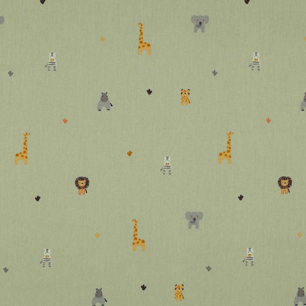 BOMULLSTYG SMÅ FAST STORA DJUR EUKALYPTUSGRÖN/BEIGE /GRÅ FG 7