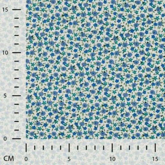 Här är tyget som skriker sommar, på det där nostalgiska, blomromantiska viset. Blommorna är ca 0,5cm. En härlig bomullspoplin (=tätvävd). Gör sig lika bra i babynestet, som i skjortan, som i kjolen, som i gardinen, som i örngottet, som i, ja, du förstår, den passar till lite utav varje.