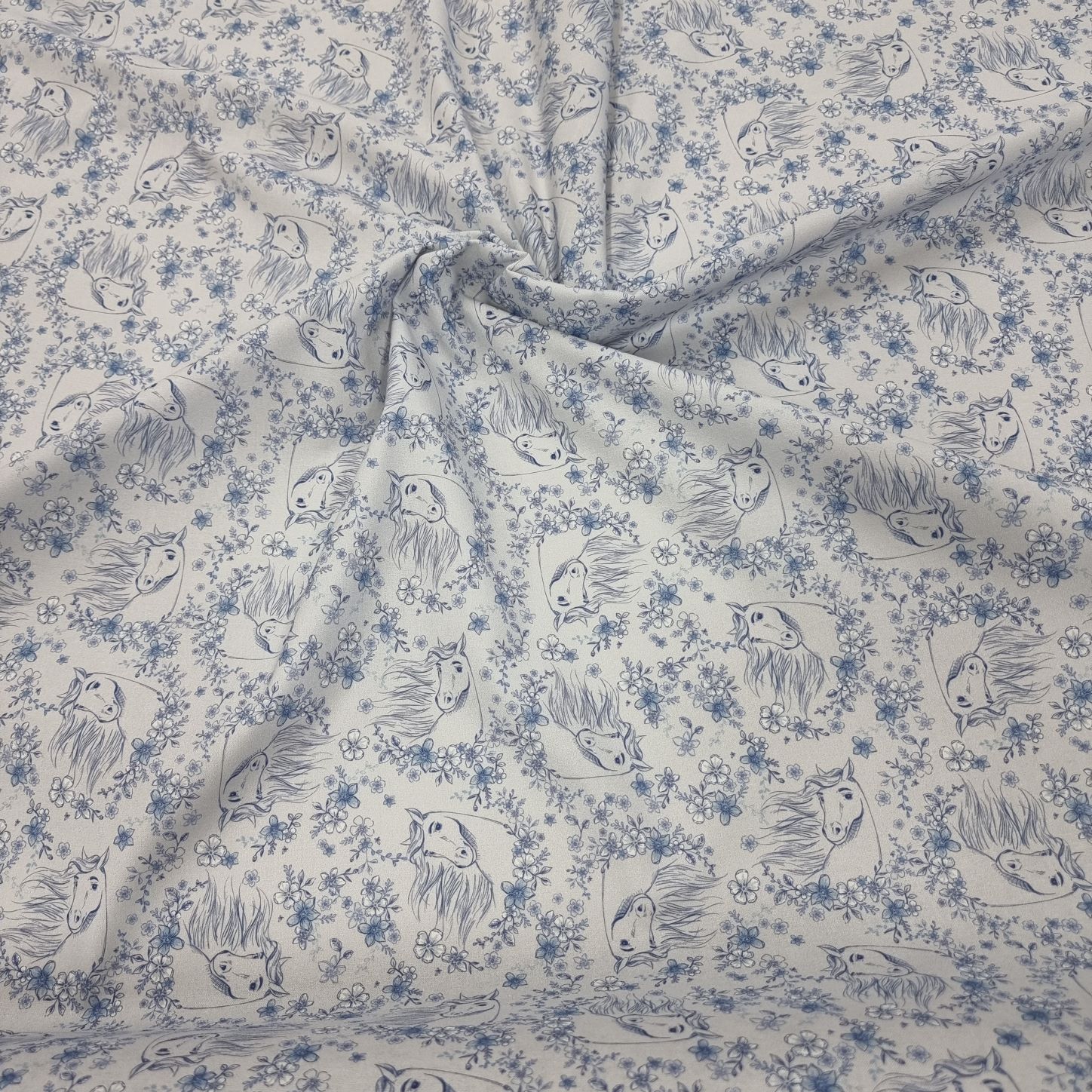 Spirit – Hästen från Vildmarken ! -Dreamworks-  i en bomullspoplin (=tätvävd). Gör sig lika bra i klänningen, som i babynestet, som i skjortan, som i kjolen, som i gardinen, som i örngottet, som i, ja, du förstår, den passar till lite utav varje.