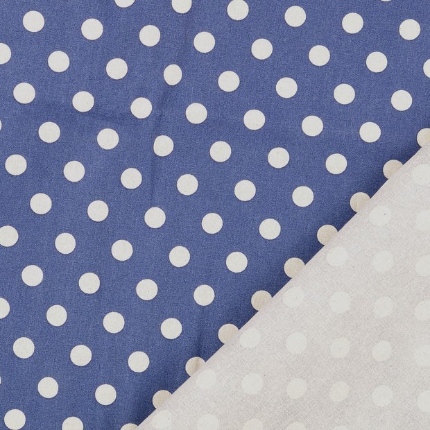 En högkvalitativ (cretonne) och härlig bomullsväv med klassiska prickar på färgad botten. Pricken är strax över 1cm. Det som gör det här trycket lite speciellt är att det är en sk wash out dvs. det får en lite sliten vintage-look efter tvätt. Gör sig lika bra i skjortan, kjolen, gardinen, örngottet, duken, ja, du förstår, den passar till lite utav varje.
