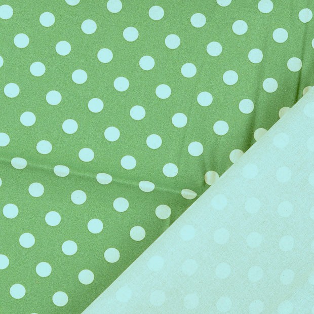 En högkvalitativ (cretonne) och härlig bomullsväv med klassiska prickar på färgad botten. Pricken är strax över 1cm. Det som gör det här trycket lite speciellt är att det är en sk wash out dvs. det får en lite sliten vintage-look efter tvätt. Gör sig lika bra i skjortan, kjolen, gardinen, örngottet, duken, ja, du förstår, den passar till lite utav varje.