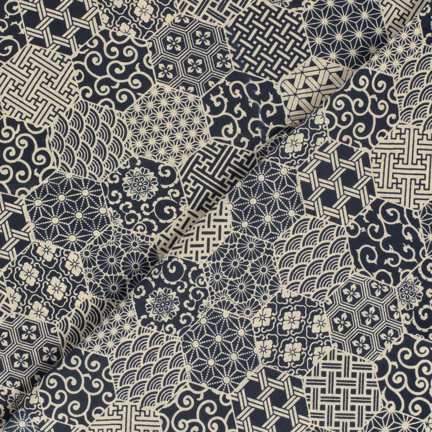 Bomullsvoile Nippon soul blå/off white fg 6