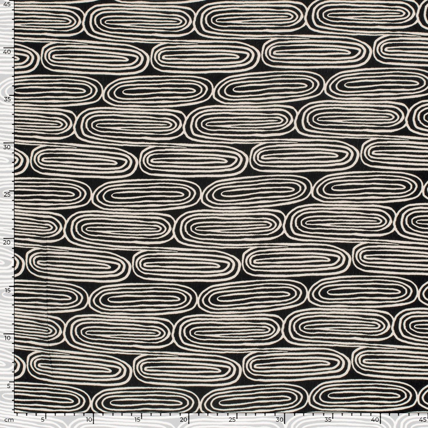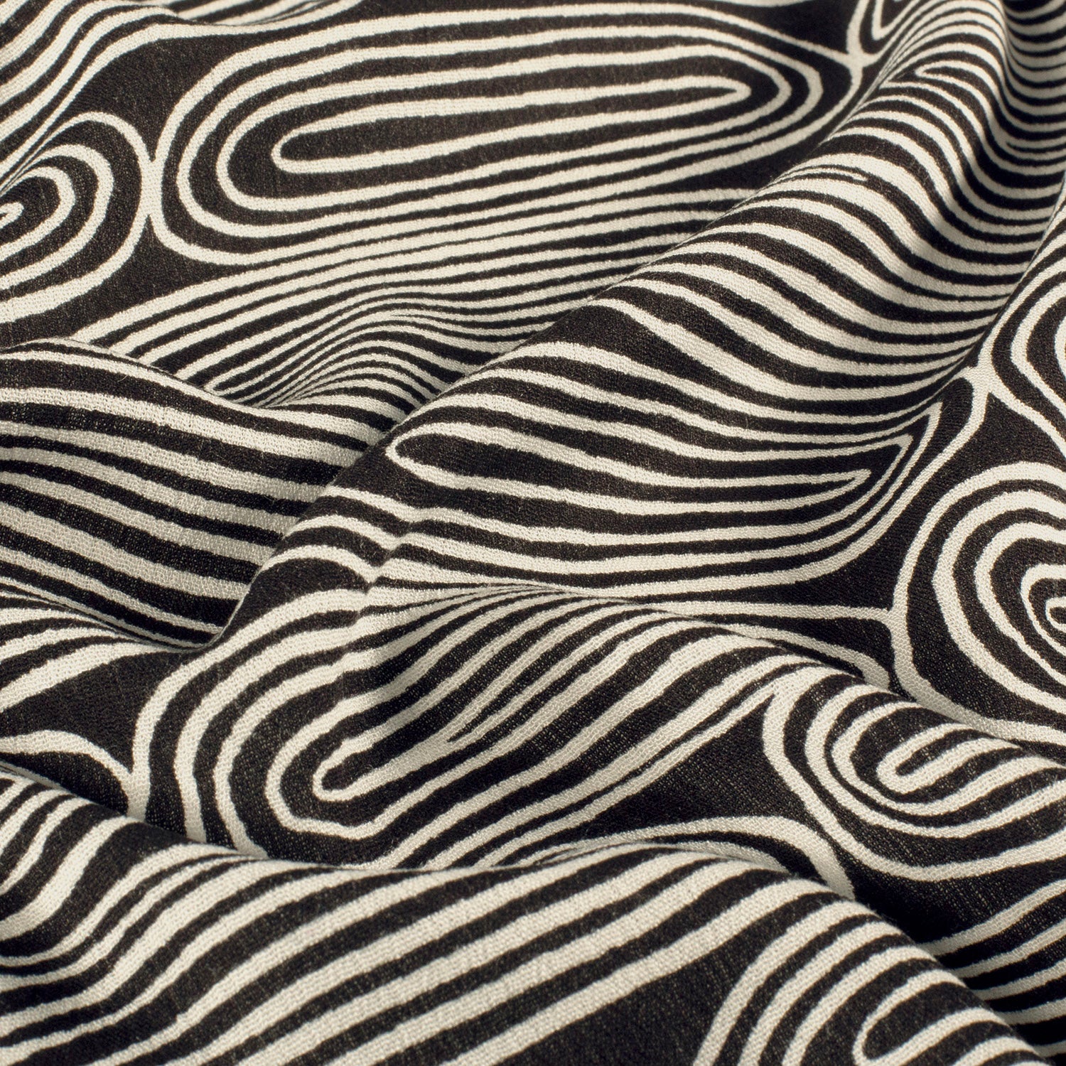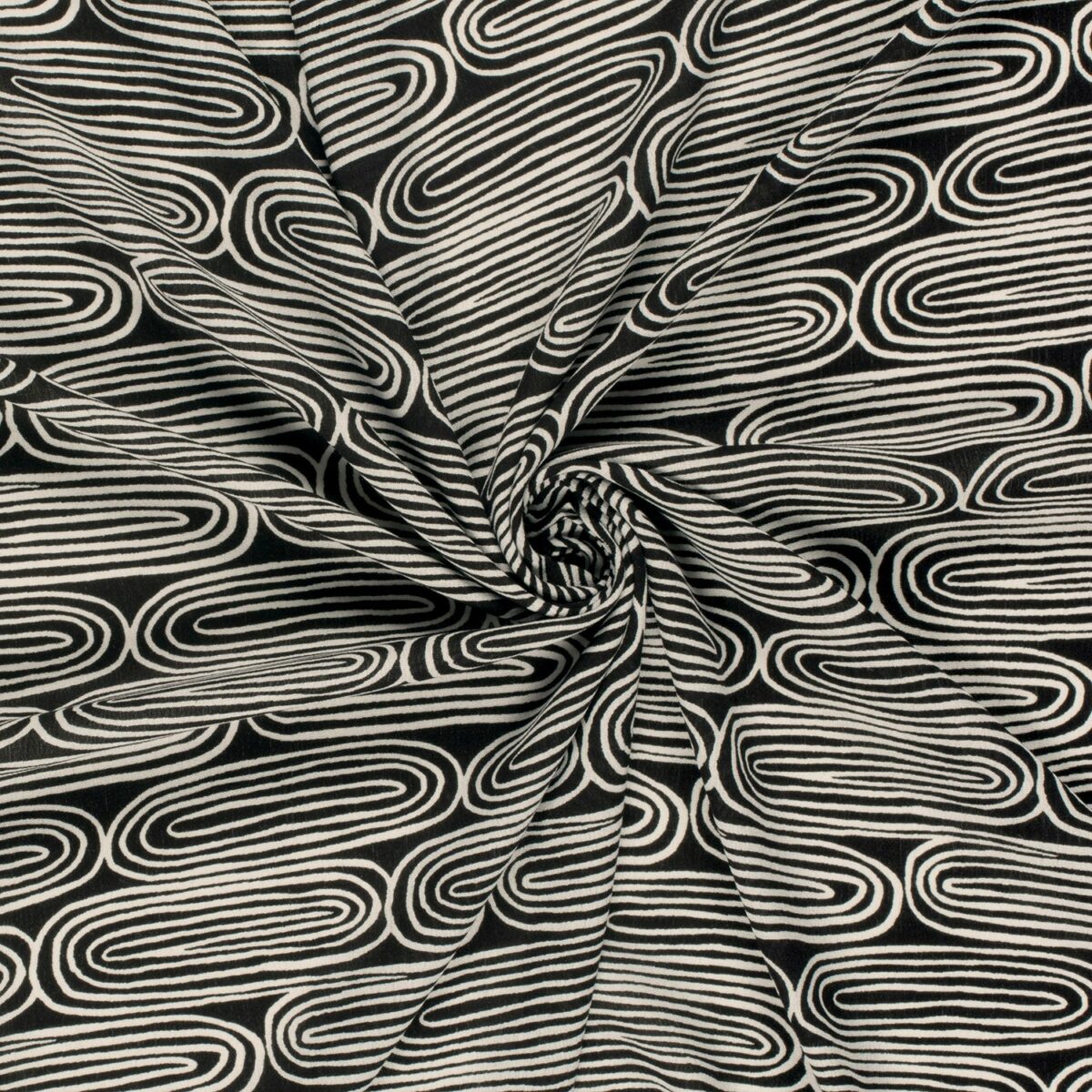 Så otroligt mysigt och inbjudande, både i färgerna och det mjuka, lekfulla mönstret. Som en kram! Ett något tunnare och lätt crepat, mjukt, fladdrigt vävt viskostyg med bra fall. Tänk dig blusen, vida byxan, byxdressen, kaftanen, långskjortan, klänningen etc.