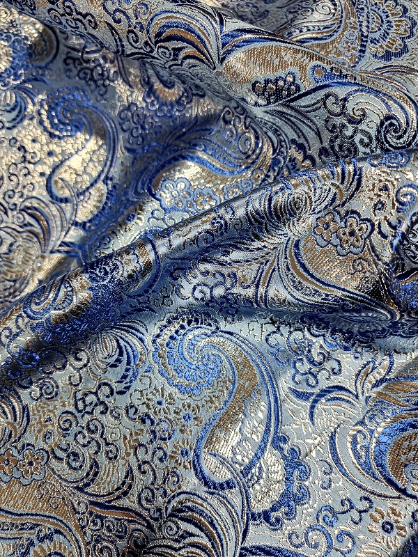 Ett sådant där tyg som får världen att stanna upp en liten stund. Du tänker ”Jag kan inte leva utan den!”. Lev ut, lev upp, det här tyget gör det möjligt. Tänk dig den där drömmiga klänningen, den vrålstiliga västen, tjusiga västen, manteln, byxorna etc. Jaquardvävt polyestertyg.