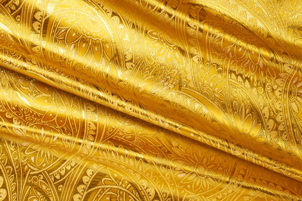 Ett sådant där tyg som får världen att stanna upp en liten stund. Du tänker ”Jag kan inte leva utan den!”. Lev ut, lev upp, det här tyget gör det möjligt. Tänk dig den där drömmiga klänningen, den vrålstiliga västen, tjusiga västen, manteln, byxorna etc. Jaquardvävt polyestertyg.