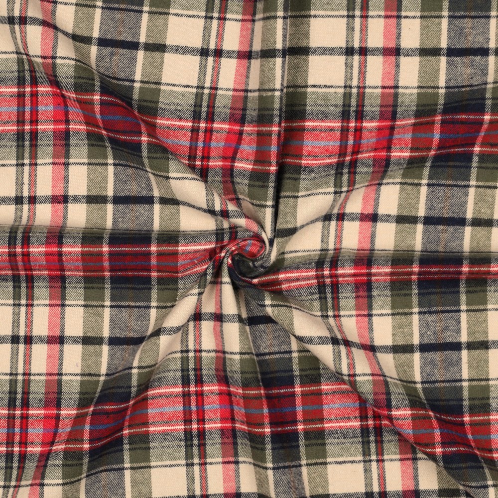 Flanell Höstrutan garnfärgad grön/marin fg 001