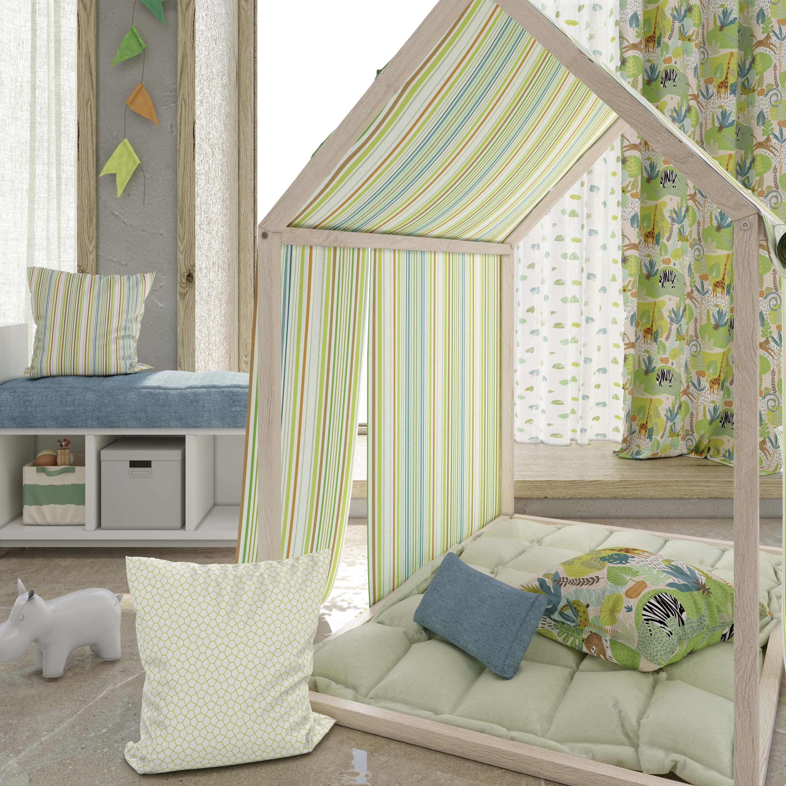 En fin gardinmetervara som hjälper till att förgylla barnrummet.