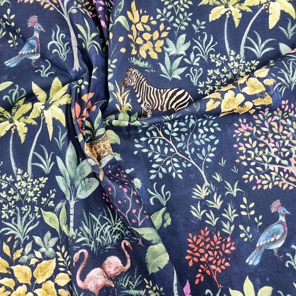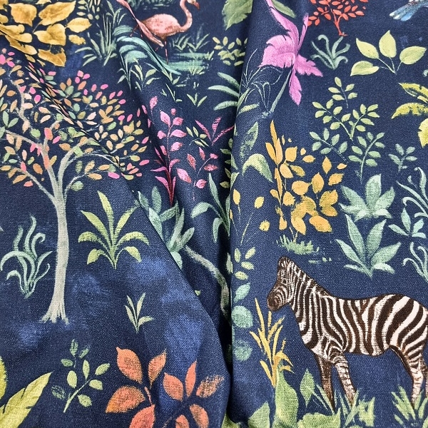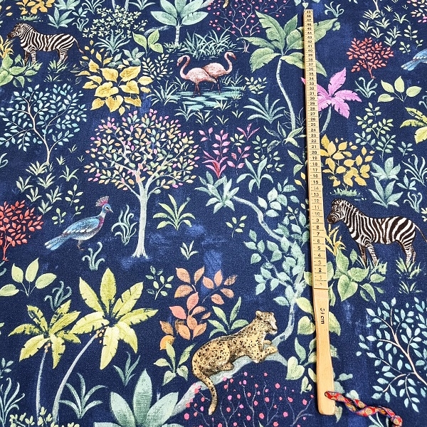 Det vilar nästan något mystiskt över denna mörka djungel. Vem lurar i skuggorna? Vad var det som lät? Zebran är 15cm mellan nos och svanstipp. En lite kraftigare väv, som lämpar sig till kuddar, gardiner, dukar, klä om stolsdynor, kassar, väskor etc.