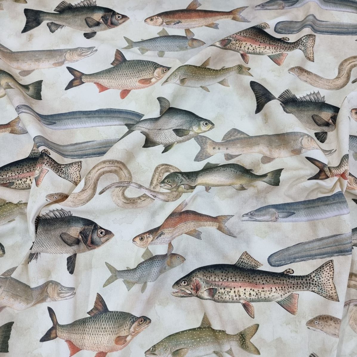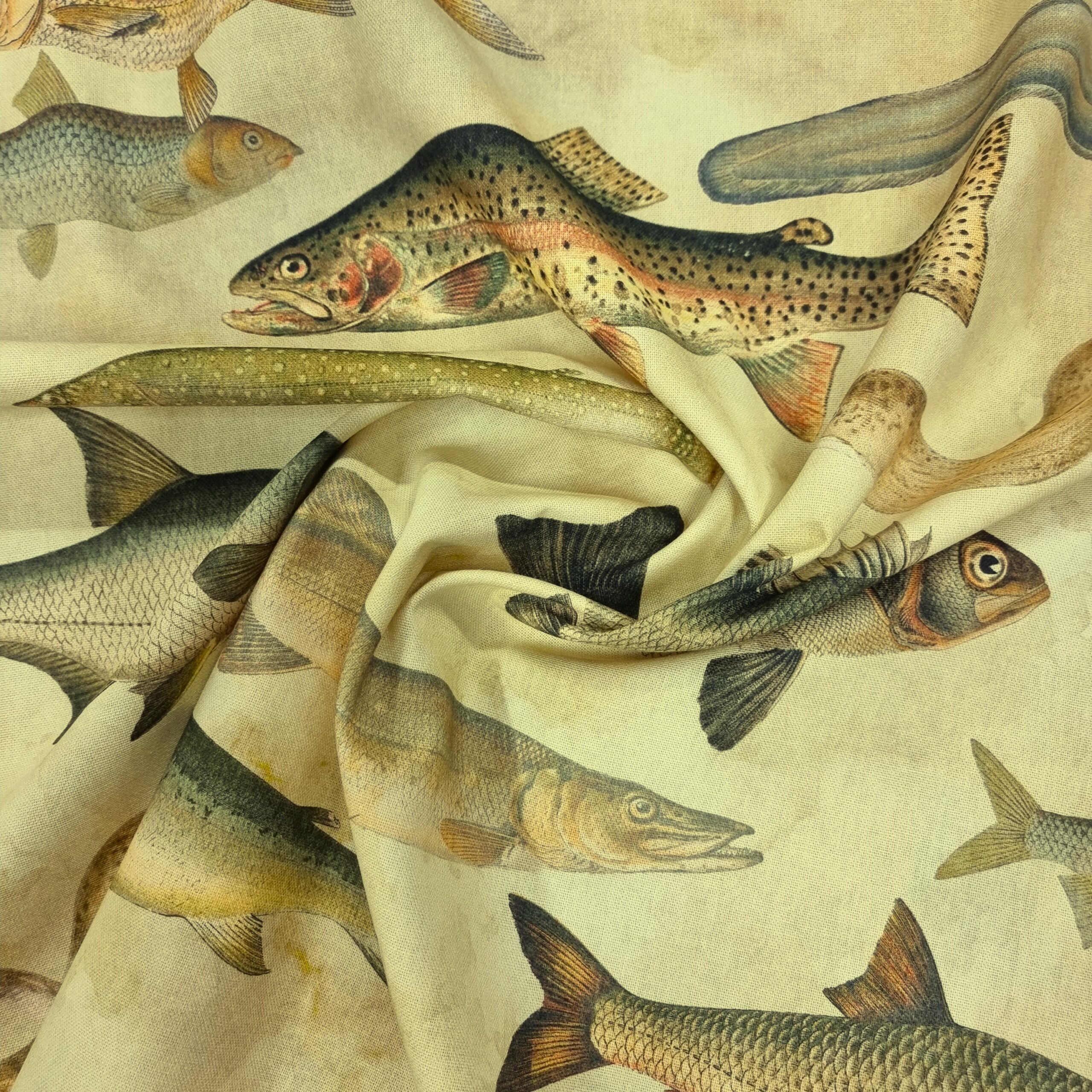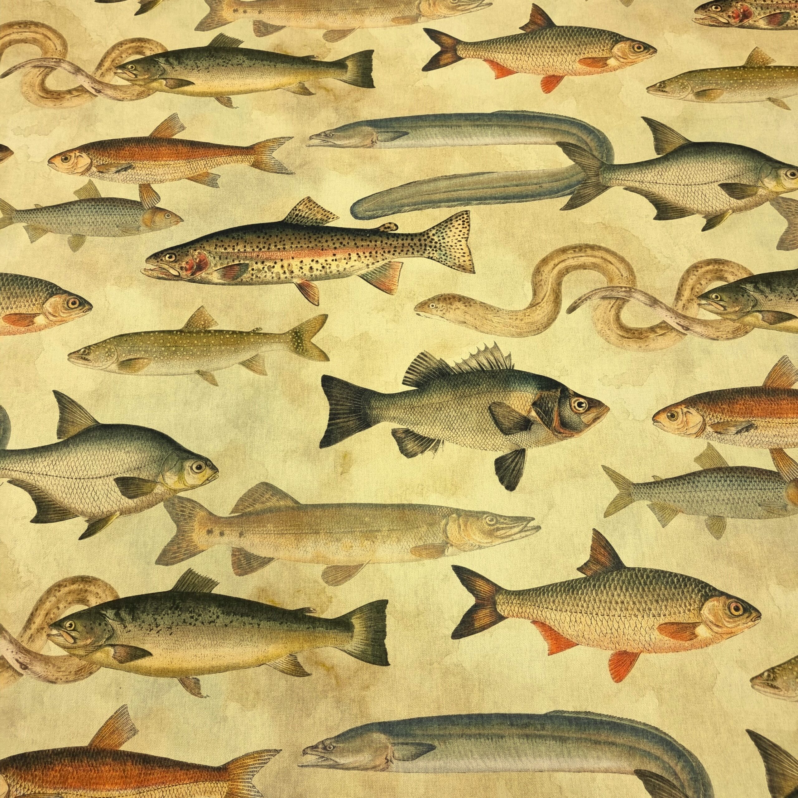 En lite kraftigare väv, som lämpar sig till kuddar, gardiner, dukar, klä om stolsdynor, kassar, väskor etc. Perfekt present till fiskefantasten eller campingen.