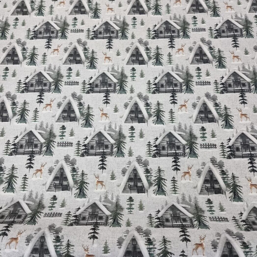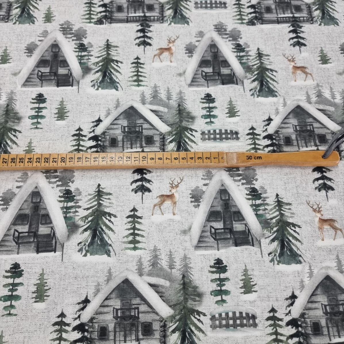 Dags att fixa till hemmet inför jul. Vinterlandskap tryckt på en halvkraftig väv, lämplig till kuddar, gardiner, dukar, pyssel eller varför inte rentav till att klä in dina mest spektakulära klappar i tyg.