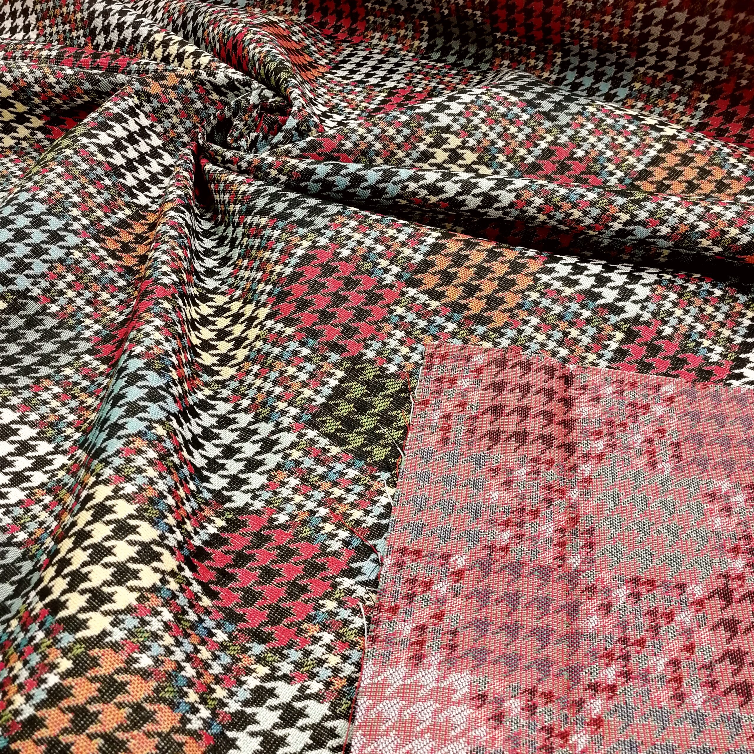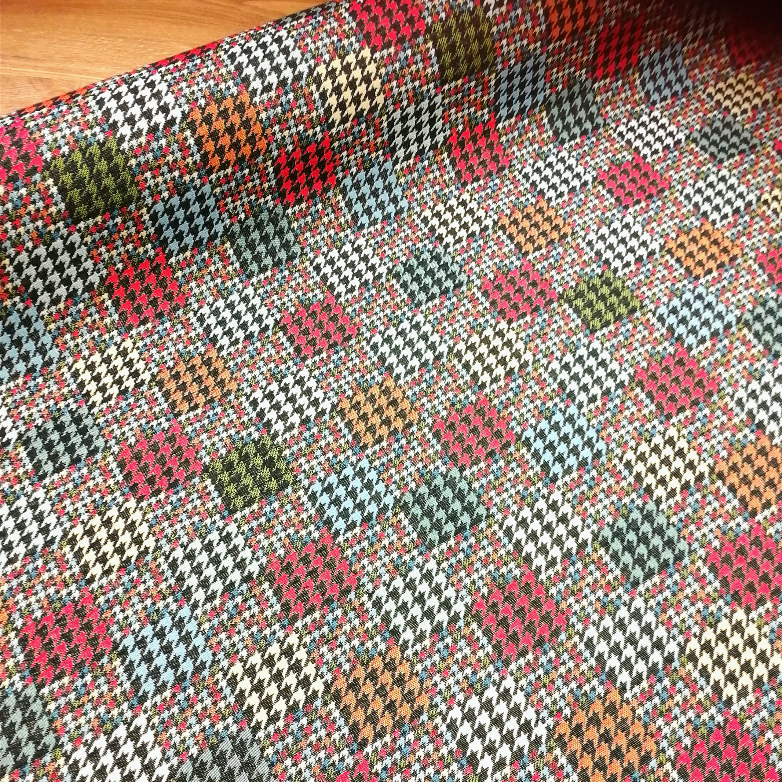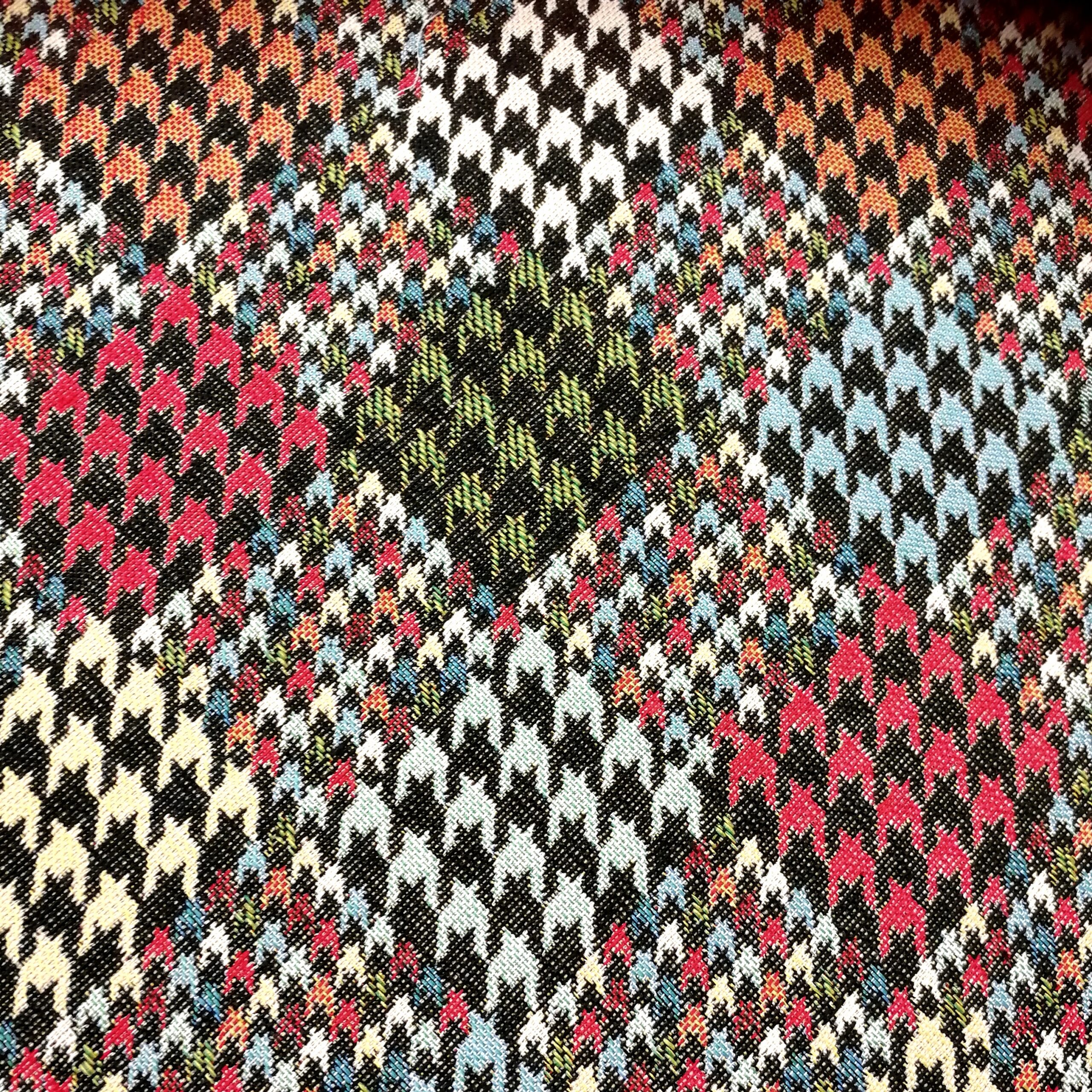 Det finns klassiskt och så finns det klassiskt. Den kära hundtanden kan väl ändå få räknas till klassikerna med en twist? Ett jaquardvävt kraftigt tyg, med härlig struktur, som verkligen hängt med genom tiderna (just detta är dock inte flera hundra år utan faktiskt helt nyproducerat). Passar perfekt till finsoffan, sypuffen, sänggaveln, shoppingkassen, den knasiga fåtöljen, pianopallen, draperiet, västen, kappan etc etc. Bara fråga oss om du blir osäker på om den funkar till det du tänkt dig.