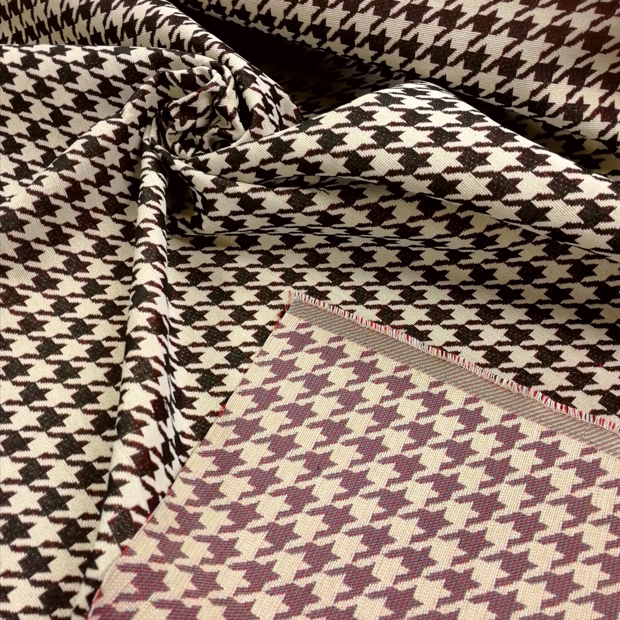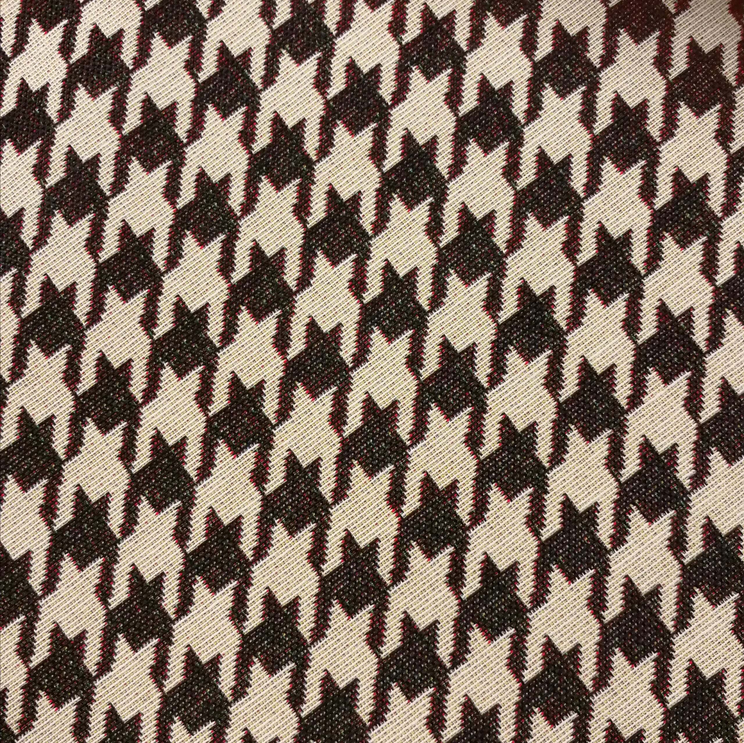 Det finns klassiskt och så finns det klassiskt. Den kära hundtanden kan väl ändå få räknas till klassikerna med en twist? Ett jaquardvävt kraftigt tyg, med härlig struktur, som verkligen hängt med genom tiderna (just detta är dock inte flera hundra år utan faktiskt helt nyproducerat). Passar perfekt till finsoffan, sypuffen, sänggaveln, shoppingkassen, den knasiga fåtöljen, pianopallen, draperiet, västen, kappan etc etc. Bara fråga oss om du blir osäker på om den funkar till det du tänkt dig.