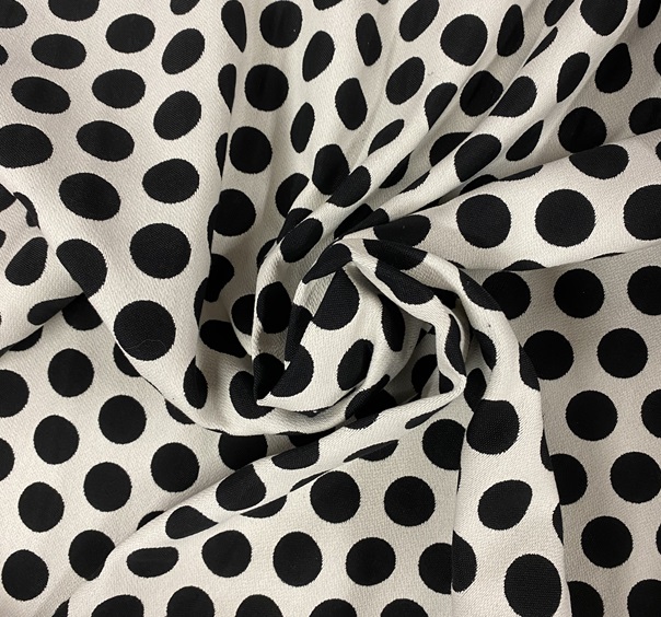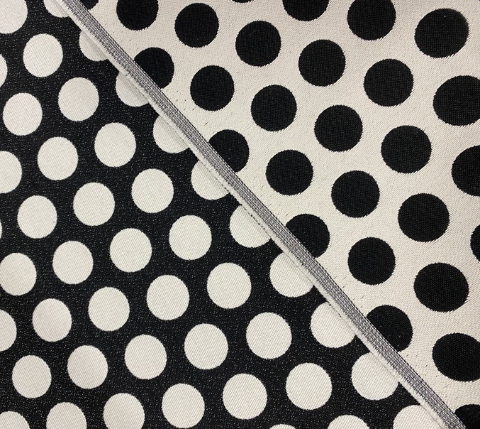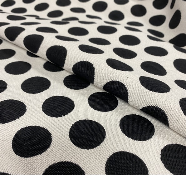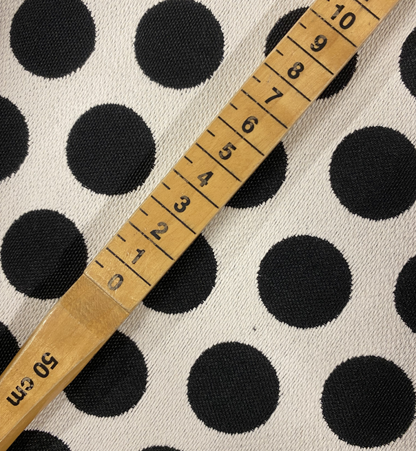 Härligt prickigt, med 20 mm stora prickar, det blir ju aldrig fel. Här i form av ett jaquardvävt kraftigt tyg, med struktur. Passar perfekt till finsoffan, sittpuffen, sänggaveln, shoppingkassen, den knasiga fåtöljen, pianopallen, draperiet, västen, kappan etc etc. Bara fråga oss om du blir osäker på om den funkar till det du tänkt dig.