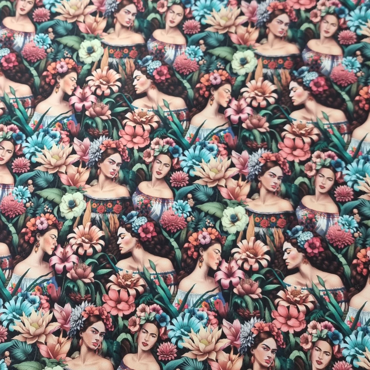 [vc_row][vc_column][vc_column_text css=”” woodmart_inline=”no” text_larger=”no”]Klassisk Frida Kahlo. Självporträtt av den mexikanska konstnären som ofta inspirerades av den mångfald av växtarter hennes hemland bjöd på. Ett vackert mönster tryckt på en lite kraftigare bomullskvalité som passar ypperligt till kuddar, gardiner, dukar etc.[/vc_column_text][/vc_column][/vc_row]