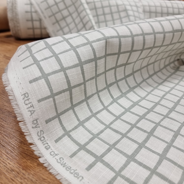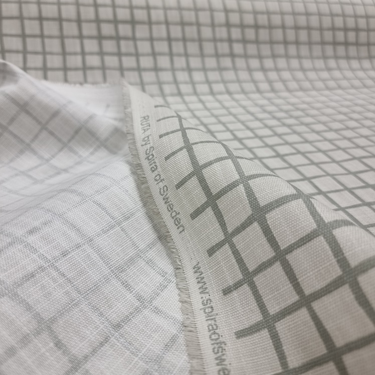 Spira of Sweden är det som står bakom denna klassiska enkla design. Tryckt på en lite kraftigare bomullsväv, som lämpar sig till kuddar, gardiner, dukar, klä om stolsdynor, kassar, väskor etc.