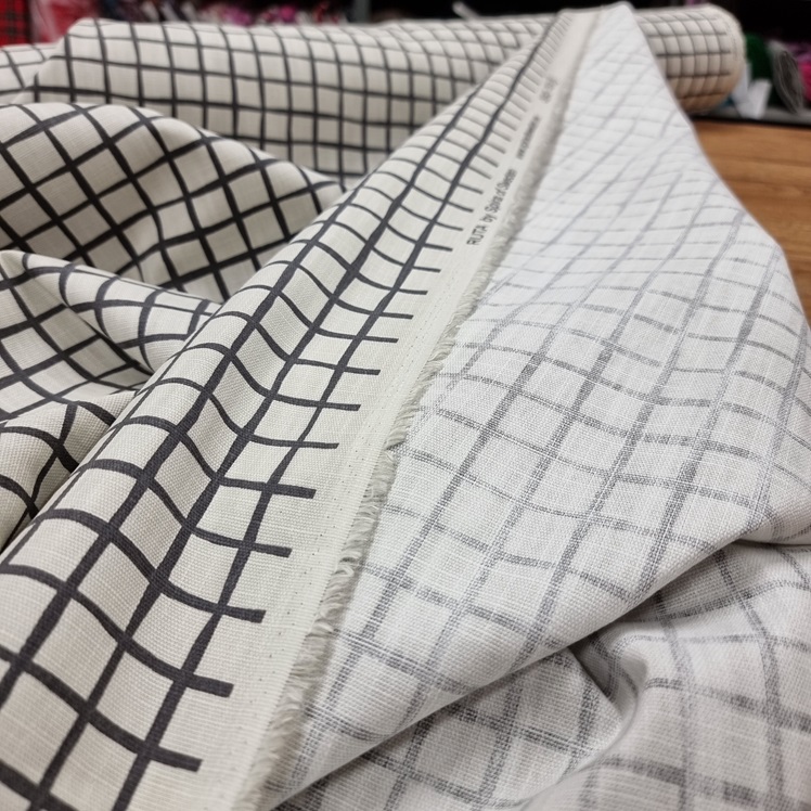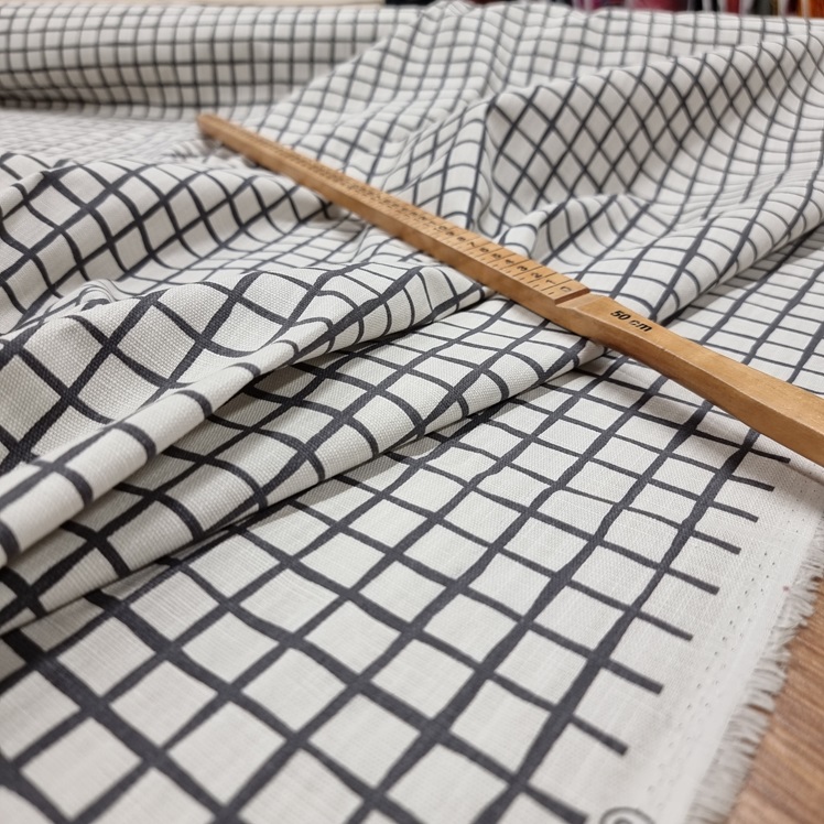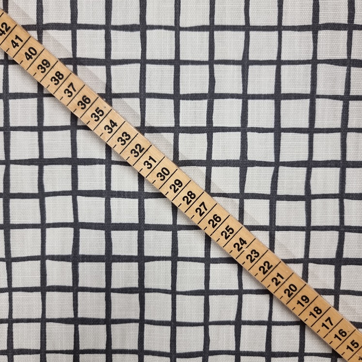 Spira of Sweden är det som står bakom denna klassiska enkla design. Tryckt på en lite kraftigare bomullsväv, som lämpar sig till kuddar, gardiner, dukar, klä om stolsdynor, kassar, väskor etc.