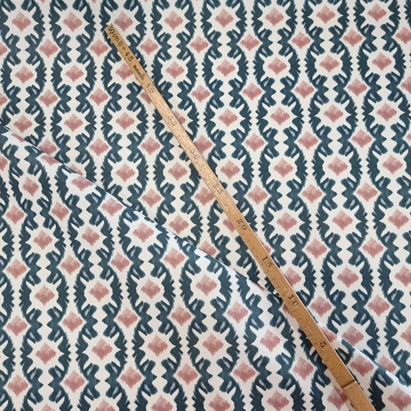 Här har vi en mönsterserie inspirerad av dem klassiska ikatmönstren. Grafiskt enkla, men otroligt vackra och behagliga. En kraftig bomullsväv, som lämpar sig till kuddar, gardiner, dukar, klä om stolsdynor, kassar, väskor, dynor, byxor etc.