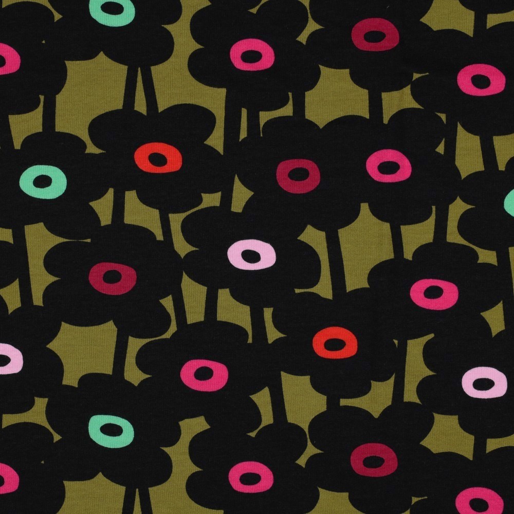Oj, oj, oj, vänta lite nu. Vad händer här? Som ett fantastiskt färgbad och dessutom i en riktigt skön jogging med flossad baksida. Enkla grafiska blommor (ca 10cm) i färger som gör en alldeles sprallig av lycka. Hade kunnat vara designat av ett visst finsk märke, men är det inte, utan av den fantastiska Nerida Hansen. Passar alldeles strålande till allt från mysbyxor till tröjor, klänningar, byxor och hoodies etc.