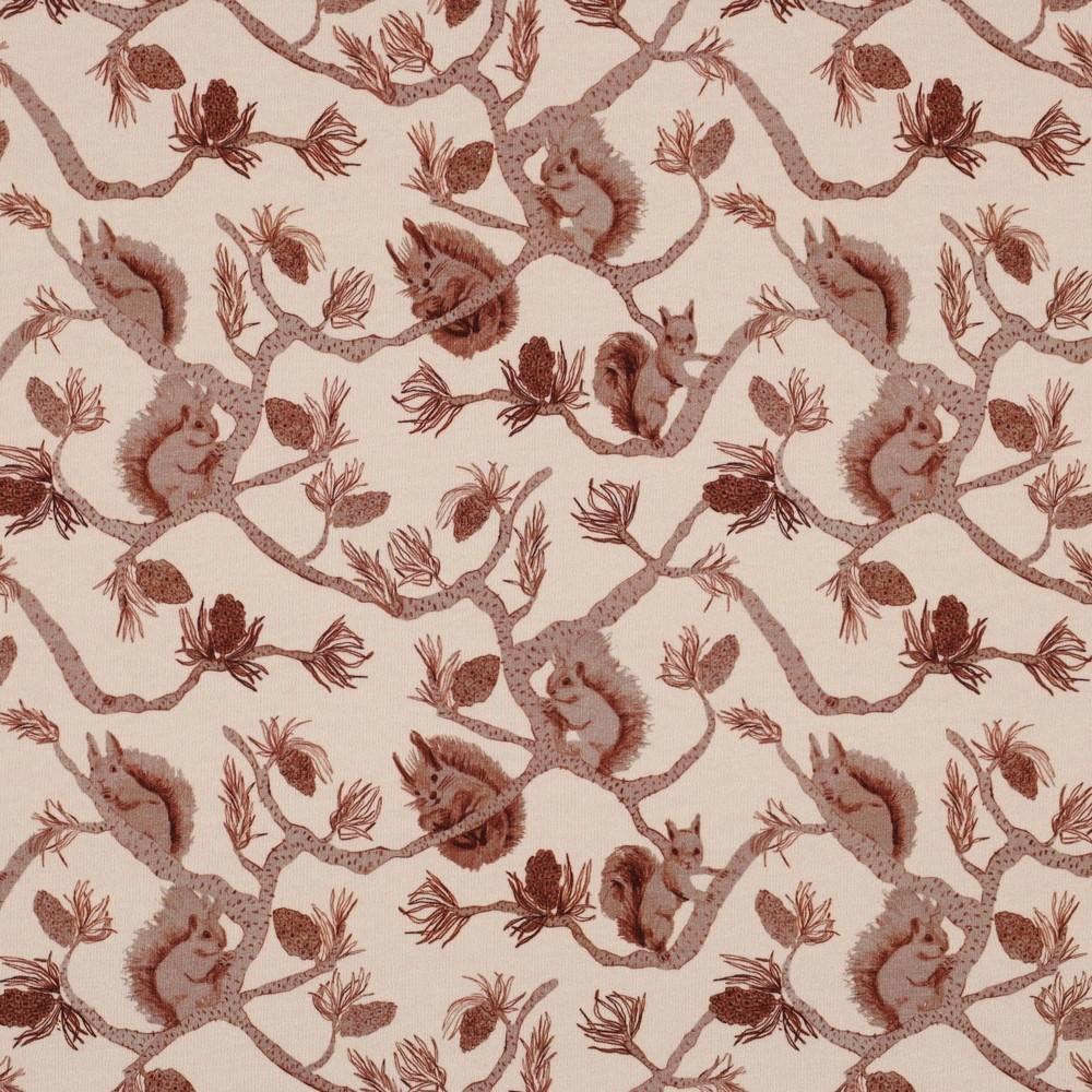Det vilar något snudd på magiskt över denna lilla ekorre. Varje kotte är ca 2cm. En skön digitaltryckt jogging med öglad baksida i härliga mjuka toner. Passar alldeles strålande till allt från mysbyxor till tröjor, klänningar och hoodies etc.[/vc_column_text][/vc_column][/vc_row]