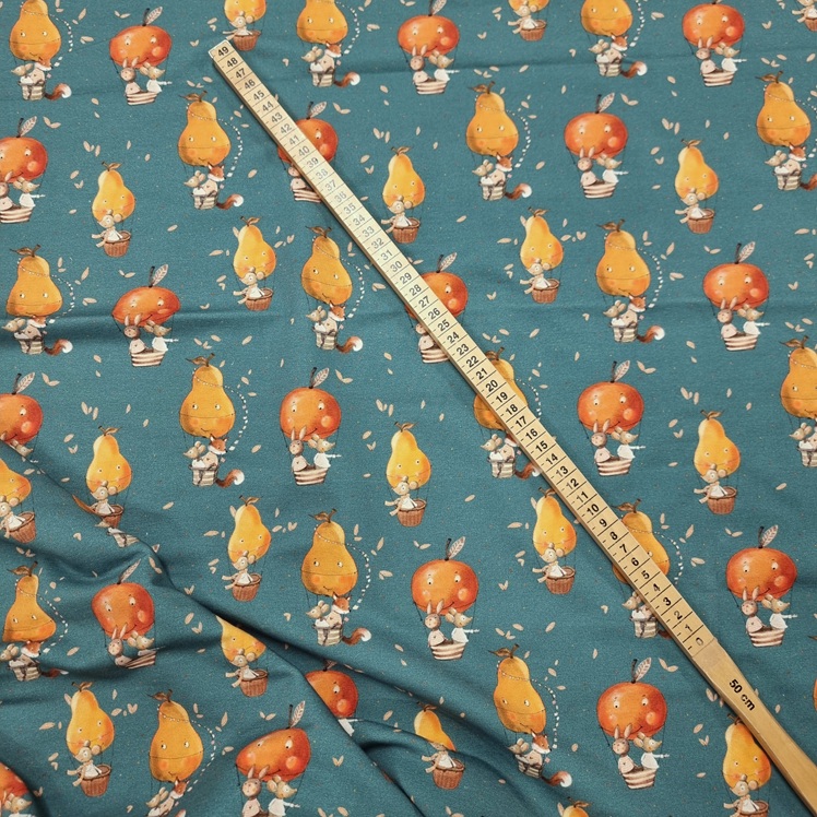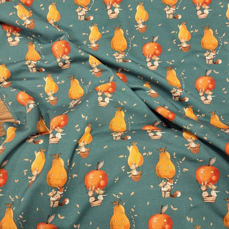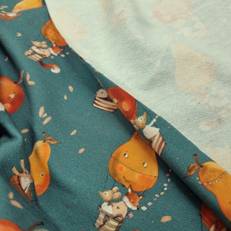 Här har du ett tyg som direkt tar dig till glad eller åtminstone gladare, på 1 sekund! Dessa charmiga luftballonger i fruktformer gör något med en. Mysigt så det förslår! Djuren som åker med på luftfärden är ca 3cm. En skön jogging med öglad baksida i härliga färger. Passar alldeles strålande till allt från mysbyxor till tröjor, klänningar och hoodies etc.