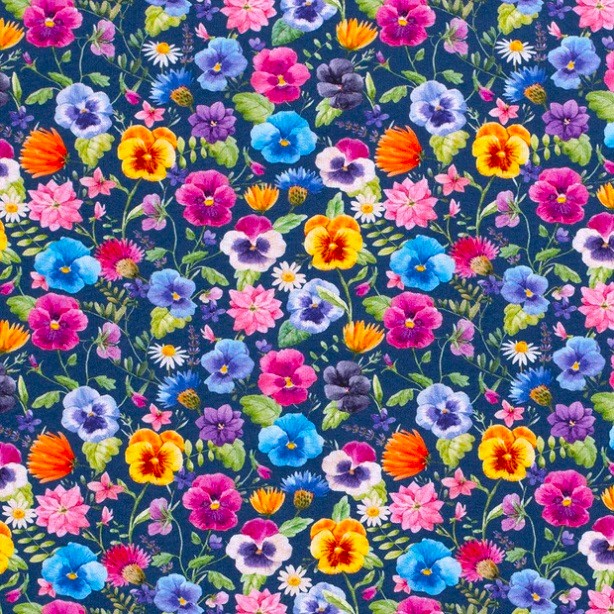 Ooooh, här är sommarvibbarna så starka att blomdoften kryper in i näsan och gräset kittlar under tårna. Och vem tusan dukade upp en filt med saft och bullar? Största blomman är 3cm. En riktigt mjuk och följsam jogging med flossad baksida och lite fall. Gör sig allra bäst i form av sköna avslappnade plagg. Tänk dig en lite oversize tröja och ett par skjorts; sommargarderoben är klar!