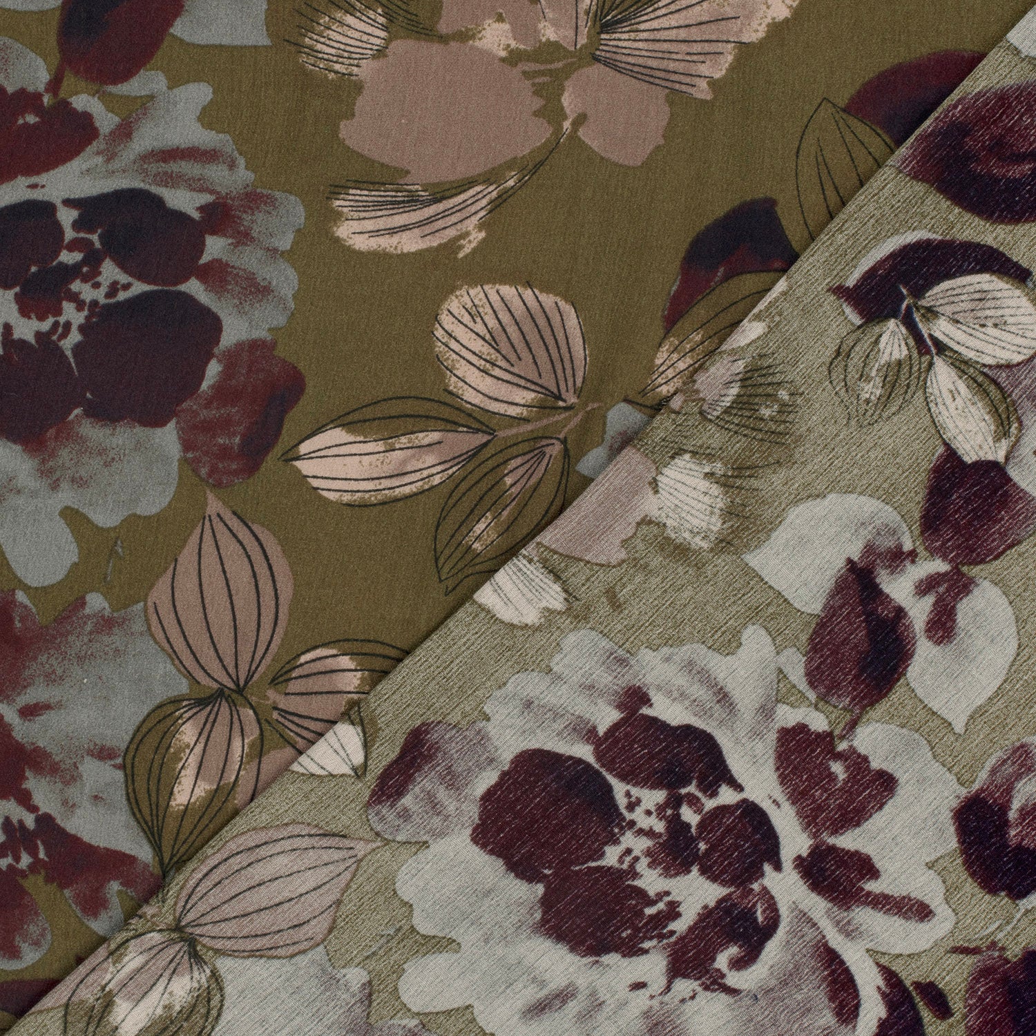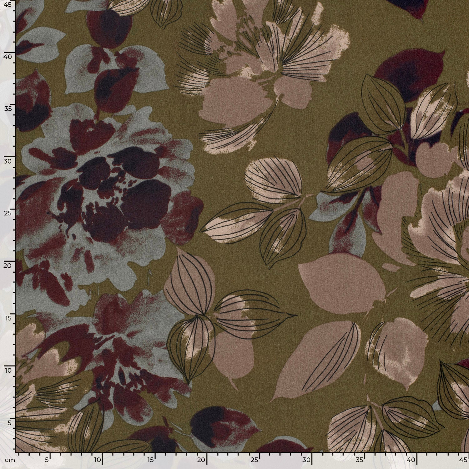Så otroligt mysigt och inbjudande, både i färgerna och det stora blommönstret. Som en kram! Ett lite tunnare och krinklat mjukt, fladdrigt vävt viskostyg med bra fall. Tänk dig blusen, vida byxan, byxdressen, kaftanen, långskjortan, klänningen etc.