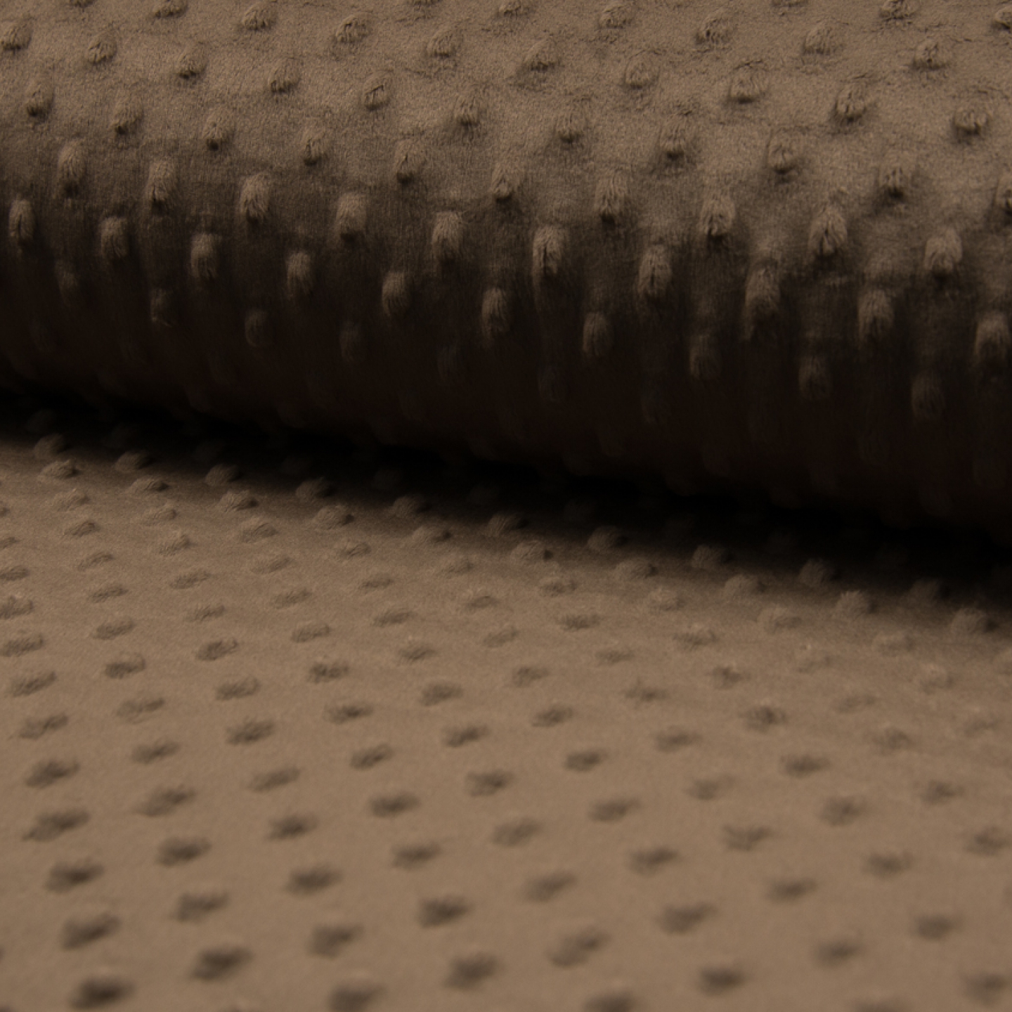 Ett väldigt mysigt tyg med utstående pluppar. Det är stickat, vilket gör det något stretchigt, men inte tillräckligt för tighta plagg. Den lena ytan tillsammans med plupparna gör det nästan ”farligt” gosigt. Passar super till filtar, plädar, som foder i overaller, hoodies etc.