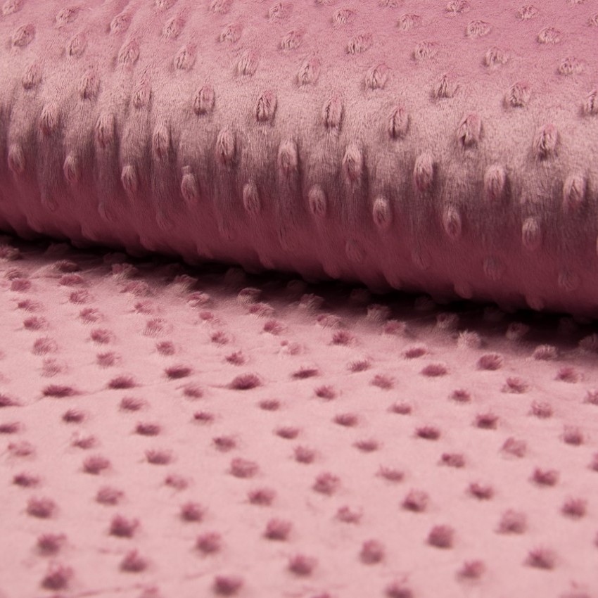 Ett väldigt mysigt tyg med utstående pluppar. Det är stickat, vilket gör det något stretchigt, men inte tillräckligt för tighta plagg. Den lena ytan tillsammans med plupparna gör det nästan ”farligt” gosigt. Passar super till filtar, plädar, som foder i overaller, hoodies etc.
