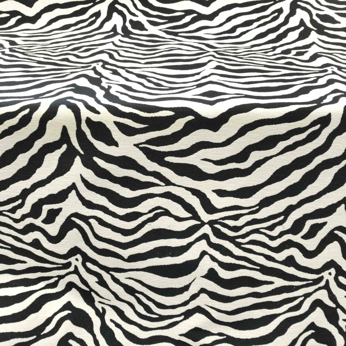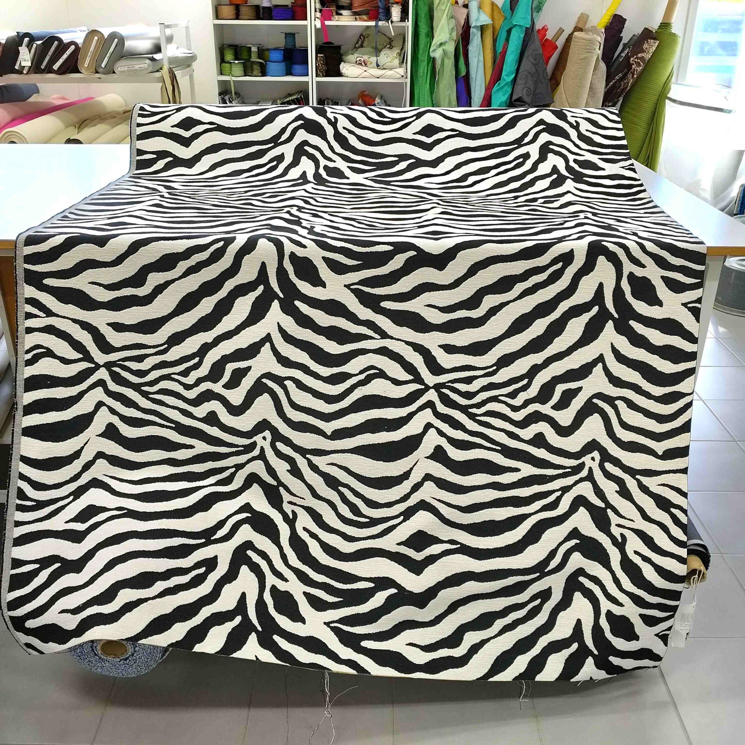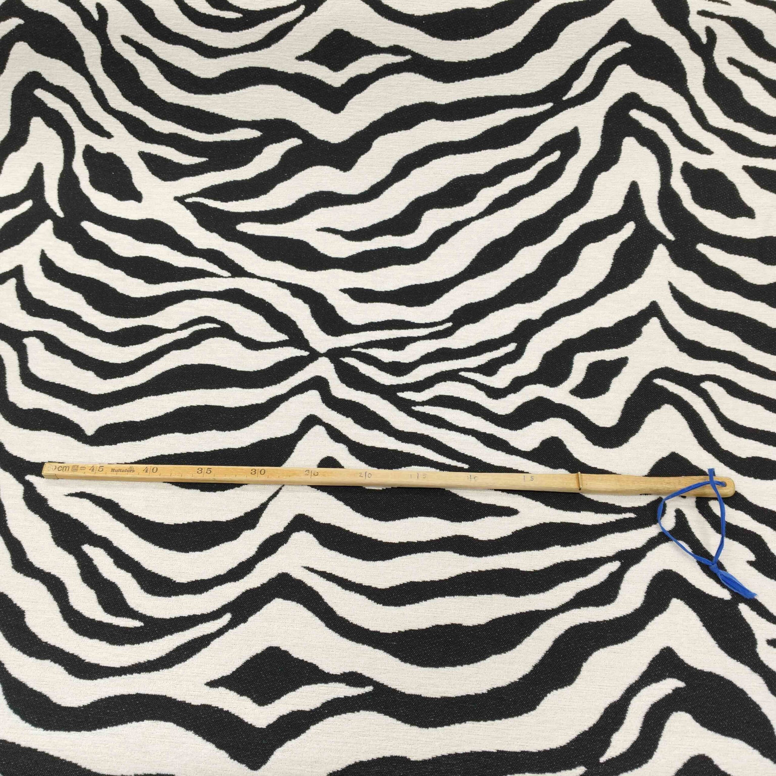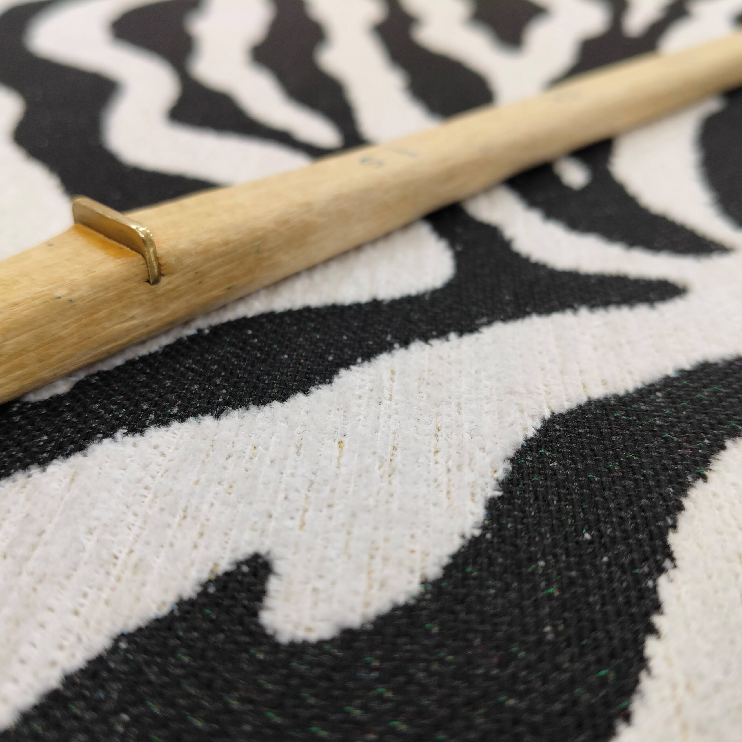 Stora zebraränder i svart och offwhite, delvis i chenille-kvalitet.