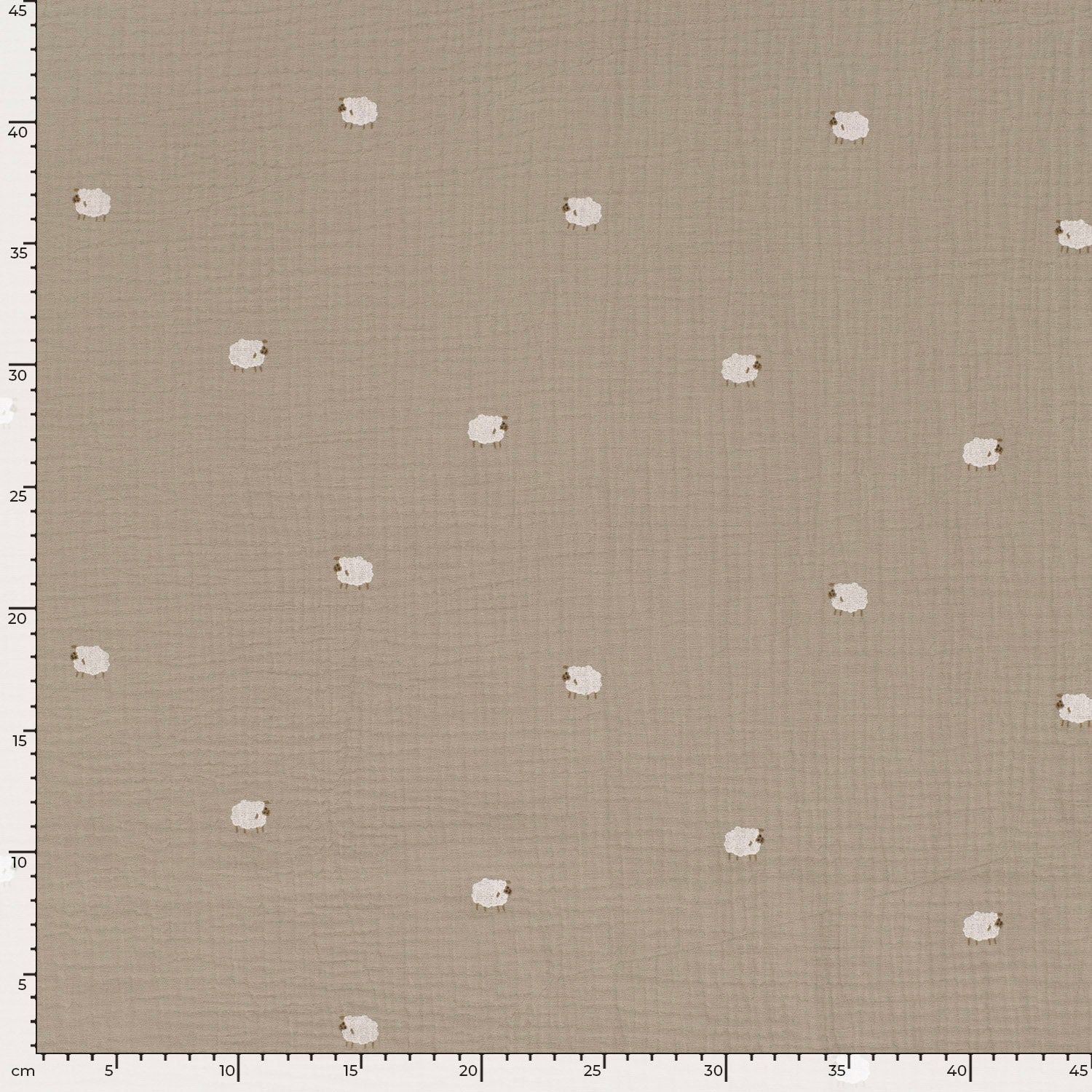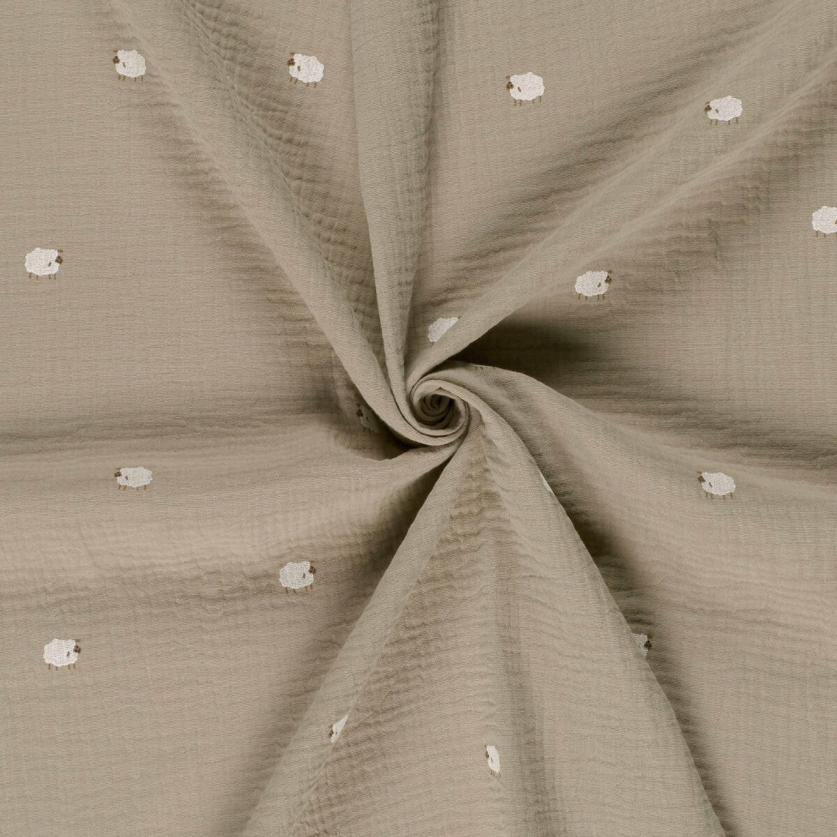 Mycket mysigare än muslin blir det nog inte och somrigare blir det nog inte heller! Dessa fina små får är ca 1,5cm stora. Ett dubbelvävt, otroligt behagligt bomullstyg med en liten skrynklig struktur. Passar ypperligt till klänningar, bebisfiltar/snuttar, blusar, skjortor, vida sommarbyxor etc.