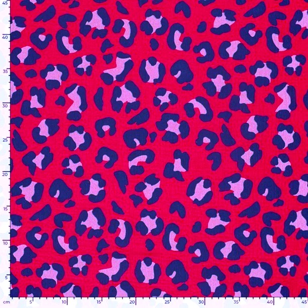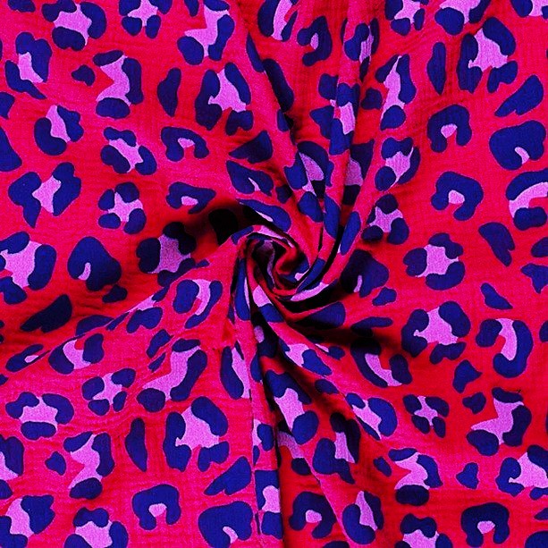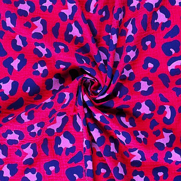 Muslin Sprallig leopard hallonrosa/blå fg 17