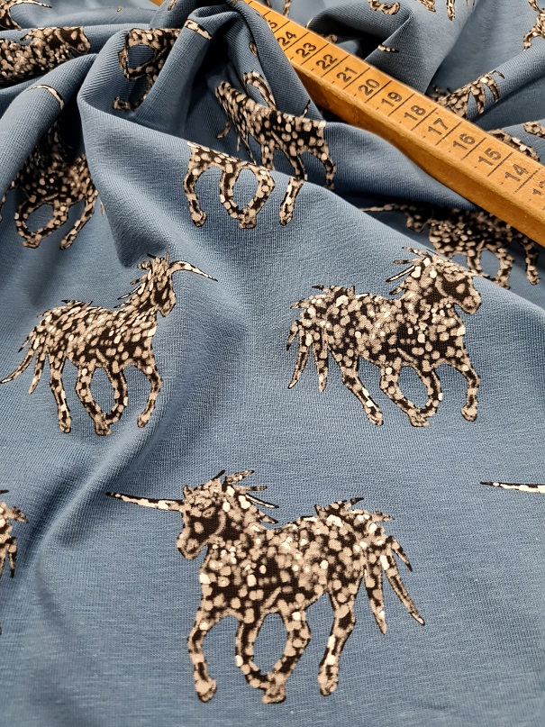 [vc_row][vc_column][vc_column_text woodmart_inline=”no” text_larger=”no”]Svensk design när den är som bäst. En enhörning som ser alldeles glittrig ut, utan att vara det. Alltså, inte massa löst glitter överallt. Ett trikåtyg i en typisk tights/t-shirt-kvalite, med en stretch som gör att det lämpar sig både till tightare och lösare plagg. Det är mjukt, följsamt och framförallt väldigt bekvämt.[/vc_column_text][/vc_column][/vc_row]