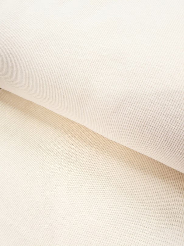 Muddväven är ett rundstickat tyg (som en tub) med ordentlig stretch, som framförallt används till ärm- och benslut eller som midja på byxor och kjolar. Den här mjuka, ribbade varianten gör sig dessutom väldigt bra i små tights (över korviga lår) och dylikt.