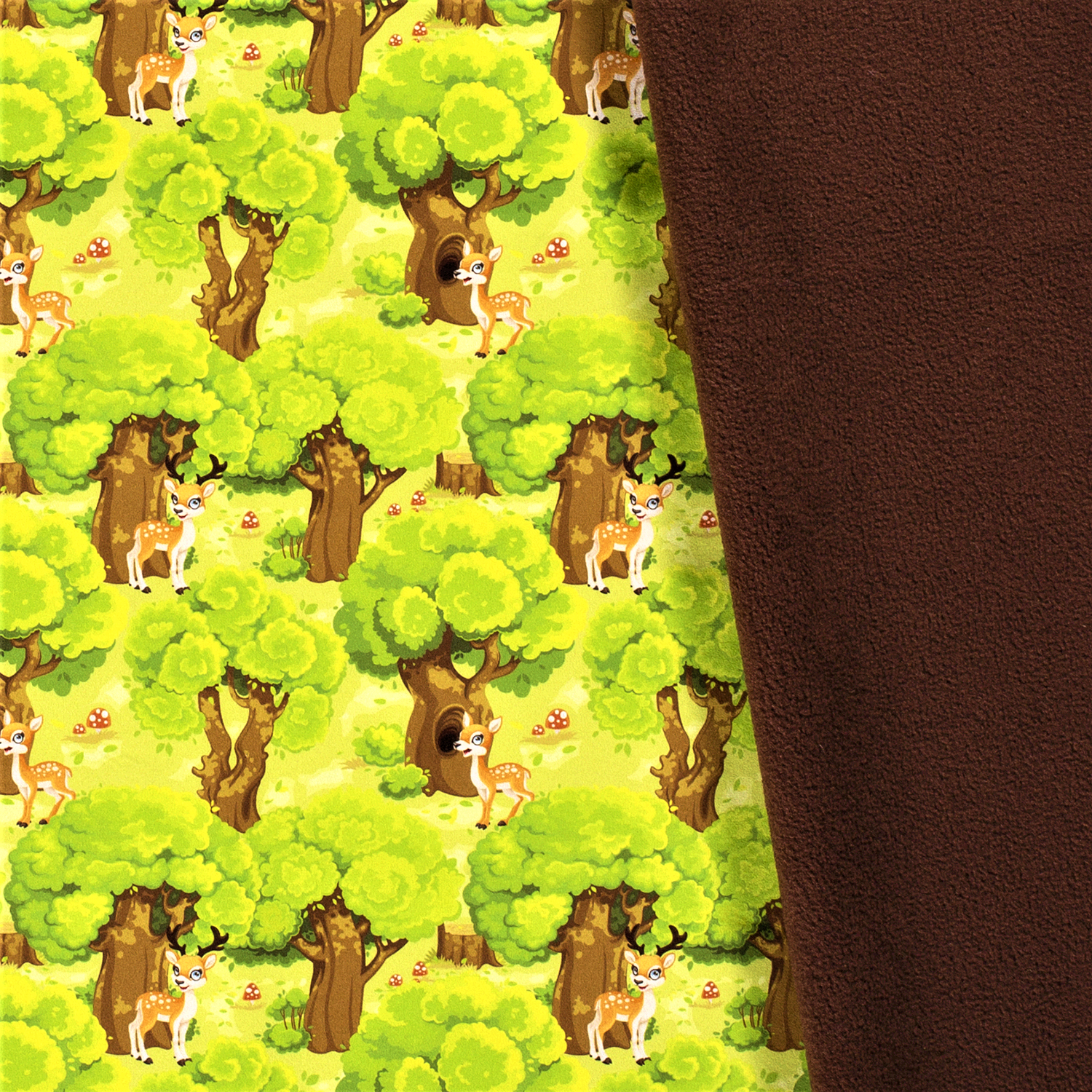 [vc_row][vc_column][vc_column_text woodmart_inline=”no” text_larger=”no”]En riktig sagoskog med träd, flugsvampar och rådjur. Relativt mjukt och följsamt material bestående av 2 lager. Innerst kommer den värmande fleecen och ytterst kommer en tålig polyesterväv. Den är i princip helt vindtät men inte helt och hållet vattentät. Tyget andas bra och torkar på ett kick, vilket gör detta till ett material för dig som vill vara ute och leka mycket.[/vc_column_text][/vc_column][/vc_row]