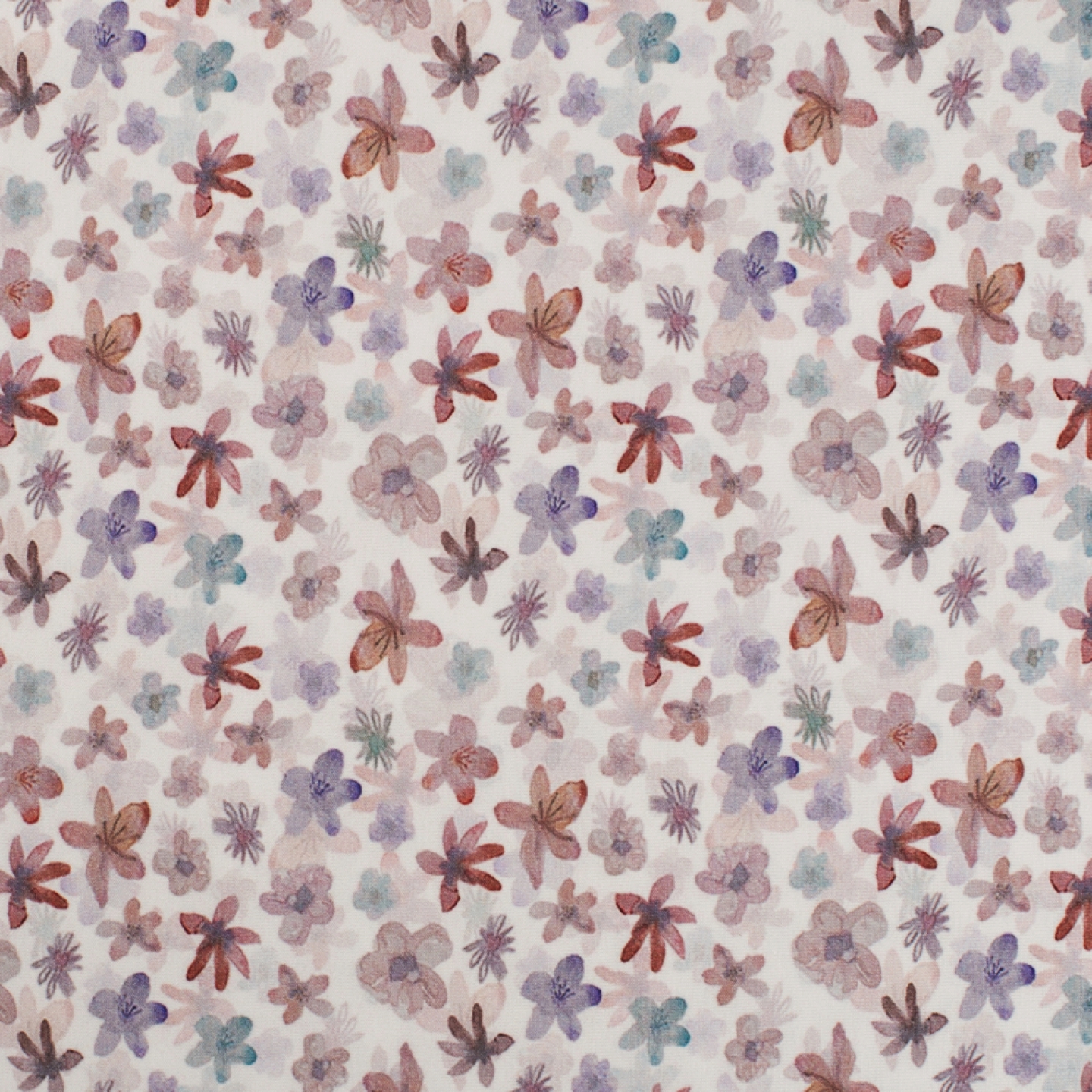 Som en somrig hälsning i akvarelltappning. Blommorna är mellan 1,5 cm och 2,5 cm. Ett trikåtyg i en typisk tights/t-shirt-kvalite, med en stretch som gör att det lämpar sig både till tightare och lösare plagg. Det är mjukt, följsamt och framförallt väldigt bekvämt.