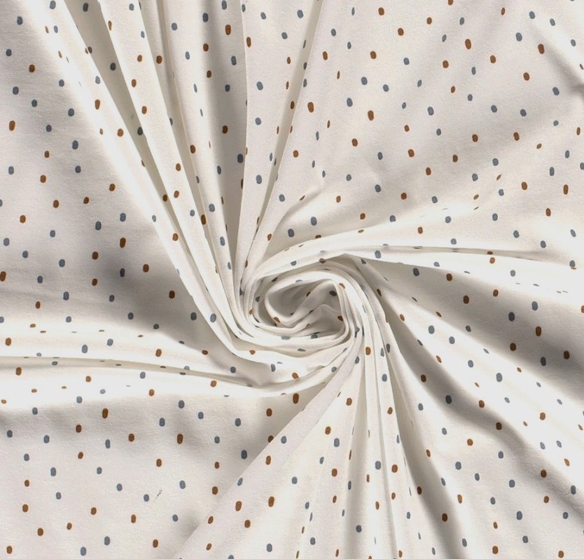 [vc_row][vc_column][vc_column_text text_larger=”no” woodmart_inline=”no”]Ibland är det enkla det bästa. Det är inte prickar, det är inte streck, nix, det är duttar och de är ca 0,5 långa med några centimeters mellanrum. Ett trikåtyg i en typisk tights/t-shirt-kvalite, med en stretch som gör att det lämpar sig både till tightare och lösare plagg. Det är mjukt, följsamt och framförallt väldigt bekvämt.[/vc_column_text][/vc_column][/vc_row]