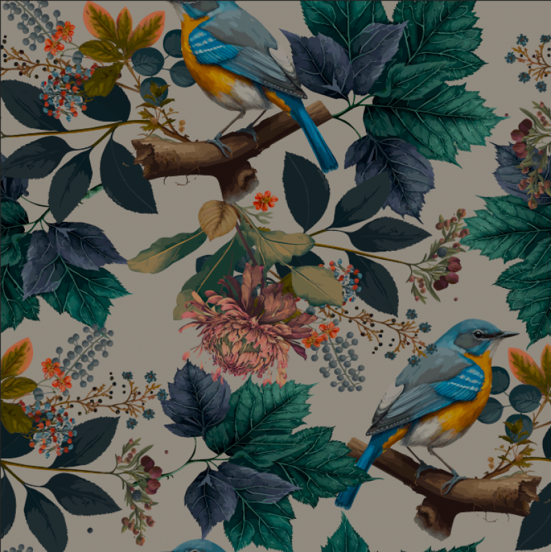 Här kan du kliva rakt in i en vacker fantasivärld belagd med en viss grad av mystik. Fågeln är ca 10cm mellan näbb och stjärtfjäder. Digitaltryckt bomullstrikå av hög kvalitet. Passar bra till klädsömnad mm.[/vc_column_text][/vc_column][/vc_row]
