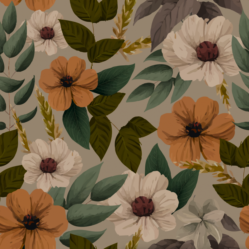 Mjuka toner, vackra blommor, nja men det är inte så dumt. Största blomman är 7cm bred. Digitaltryckt bomullstrikå av hög kvalitet. Passar bra till klädsömnad mm.