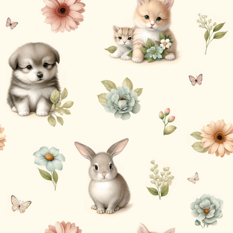 Men lägg av! Det är nästan för gulligt. Vi snackar hundvalpar, kattungar, blommor och bara allmänt löjligt hög söthetsfaktor. Den fluffiga kaninungen är ca 6cm hög, inklusive öronen. Digitaltryckt bomullstrikå av hög kvalitet. Passar bra till klädsömnad mm.