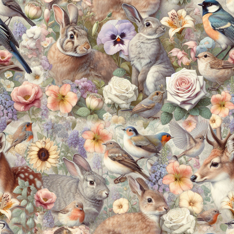Men lägg av! Det är nästan för gulligt. Kaniner, fåglar och blommor i ett magisk mix. Största kompisen är ca 7cm. Digitaltryckt bomullstrikå av hög kvalitet. Passar bra till klädsömnad mm.